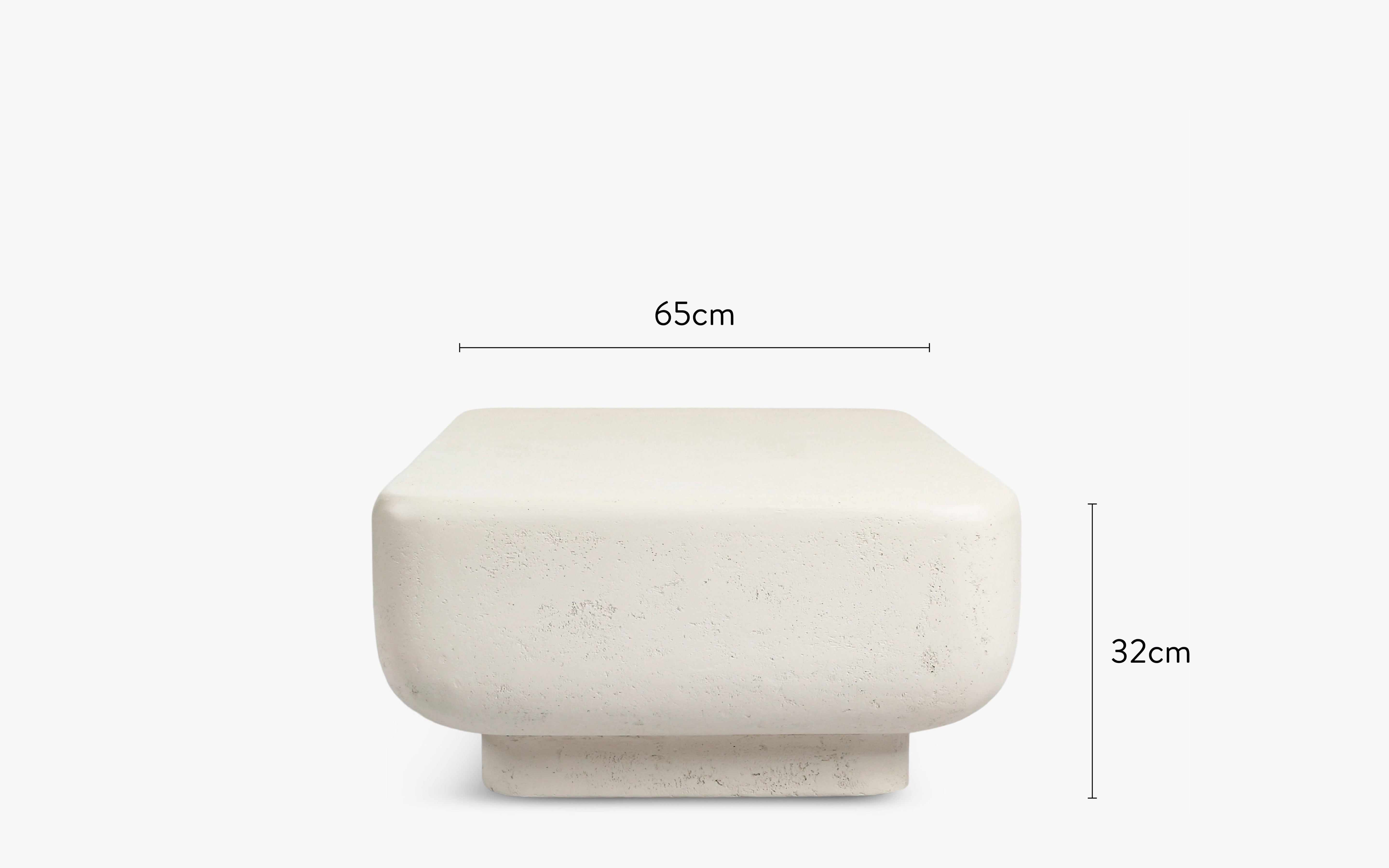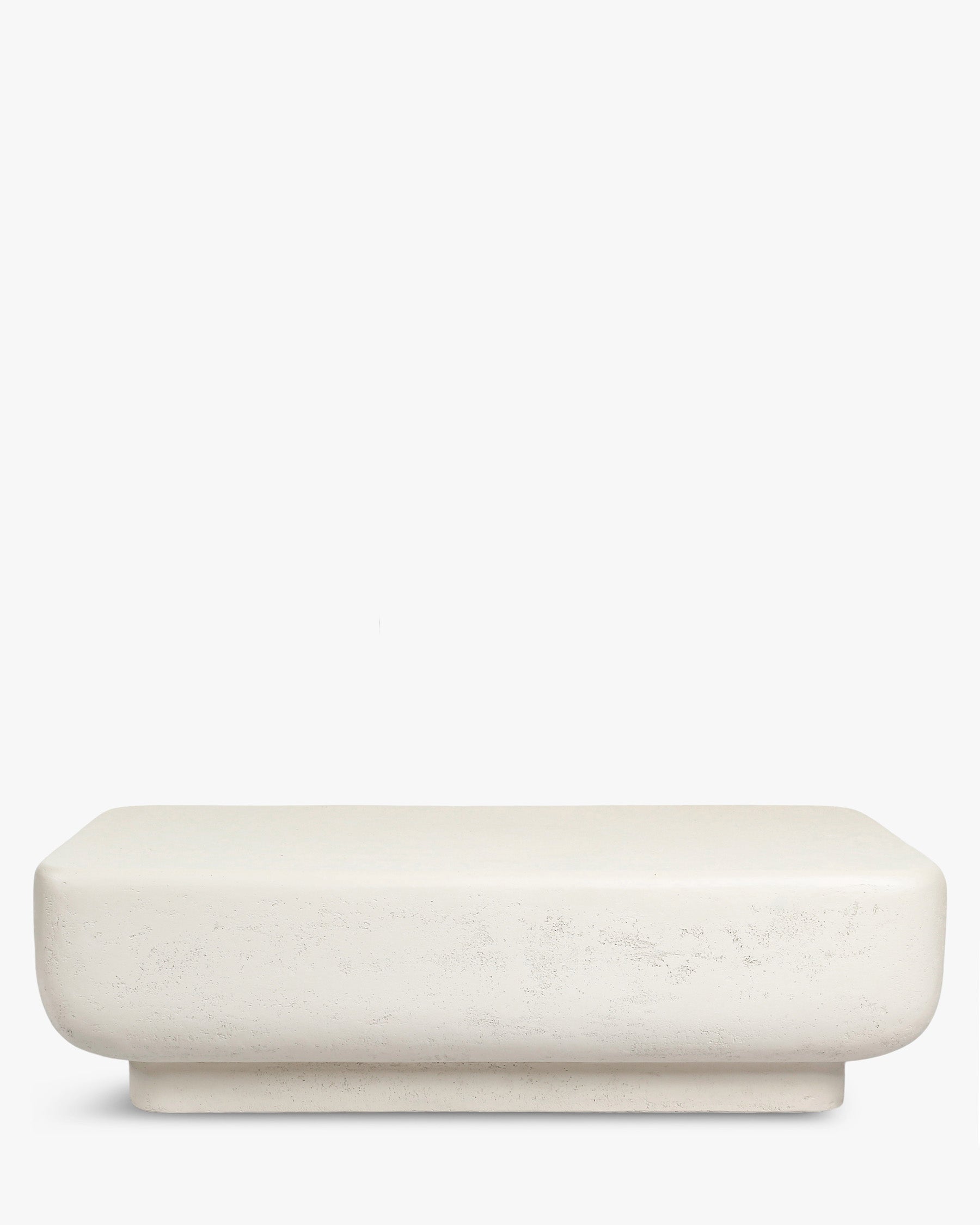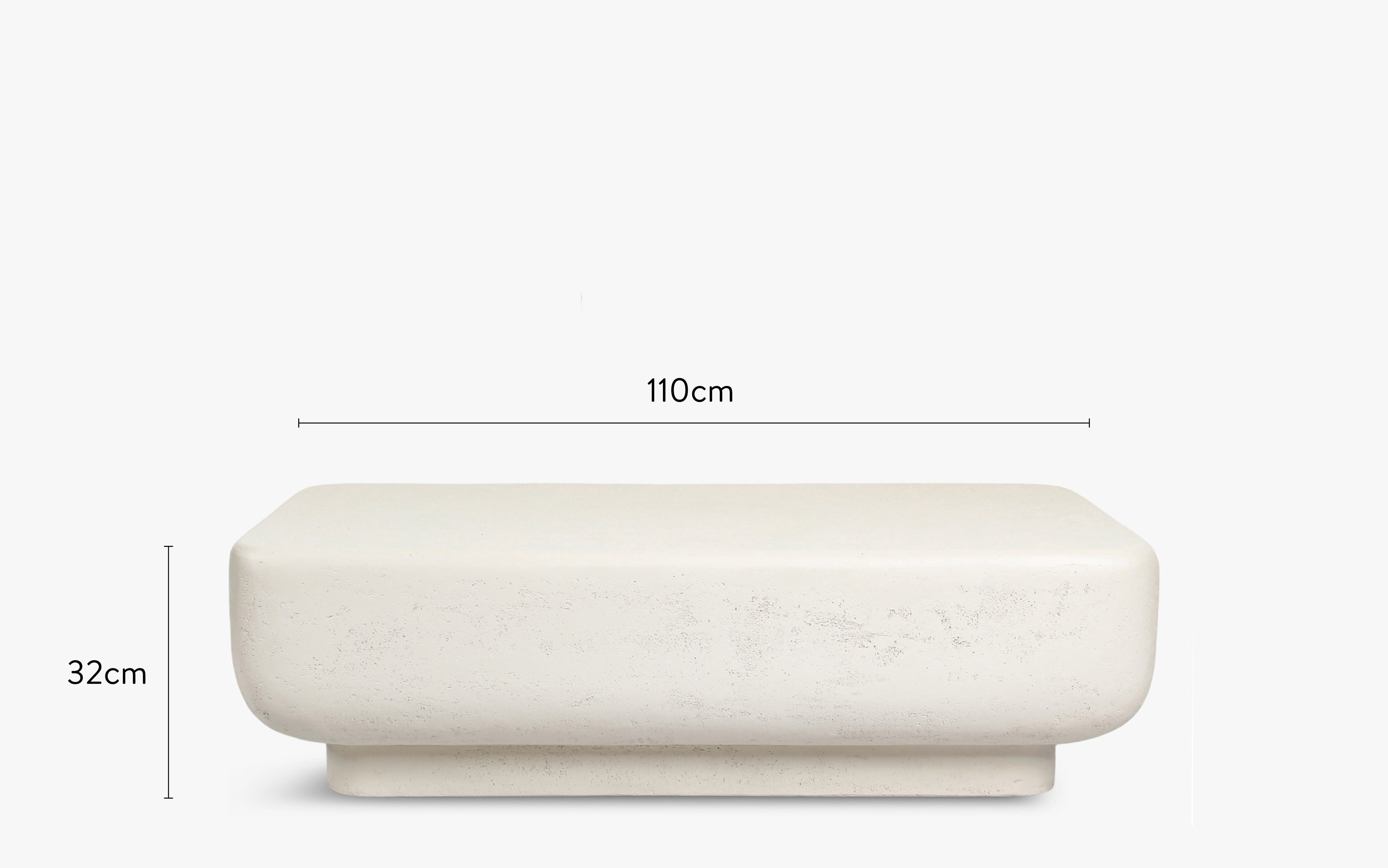 With its resolutely contemporary look, this monolithic coffee table instantly imposes its style on your interior. Its massive, reassuring silhouette seems sculpted from stone, providing a strong visual anchor and a soothing atmosphere at the heart of your living space. The precisely designed rounded edges break up the rigidity of a traditional block, giving way to organic elegance. This subtle curve exudes a cool spirit: a perfect balance between structure and fluidity, between cutting-edge design and visual comfort. Its white textured finish is reminiscent of rock polished by time, with a patina that transcends trends. A coffee table designed to last, to inspire, and to enhance your everyday life.