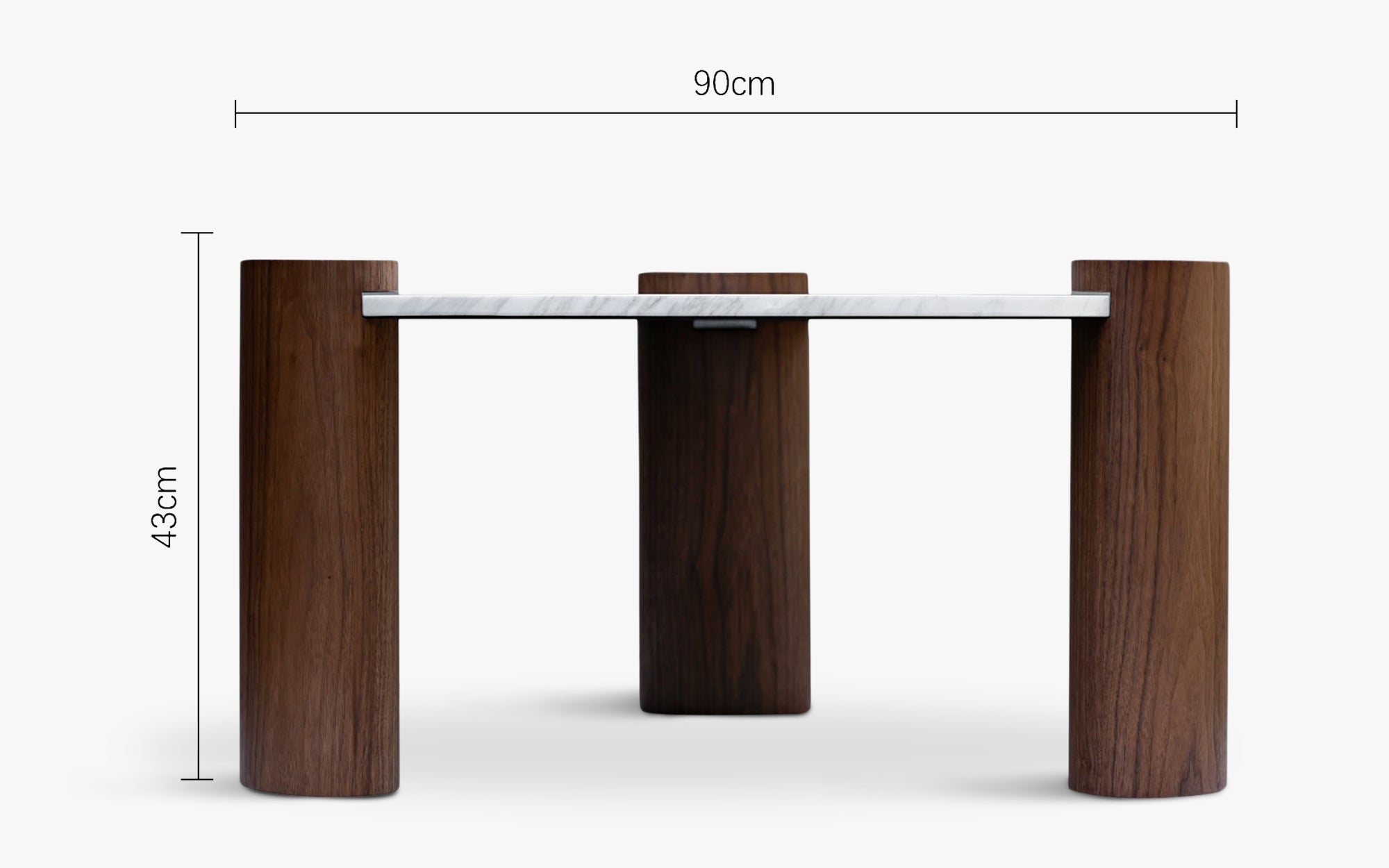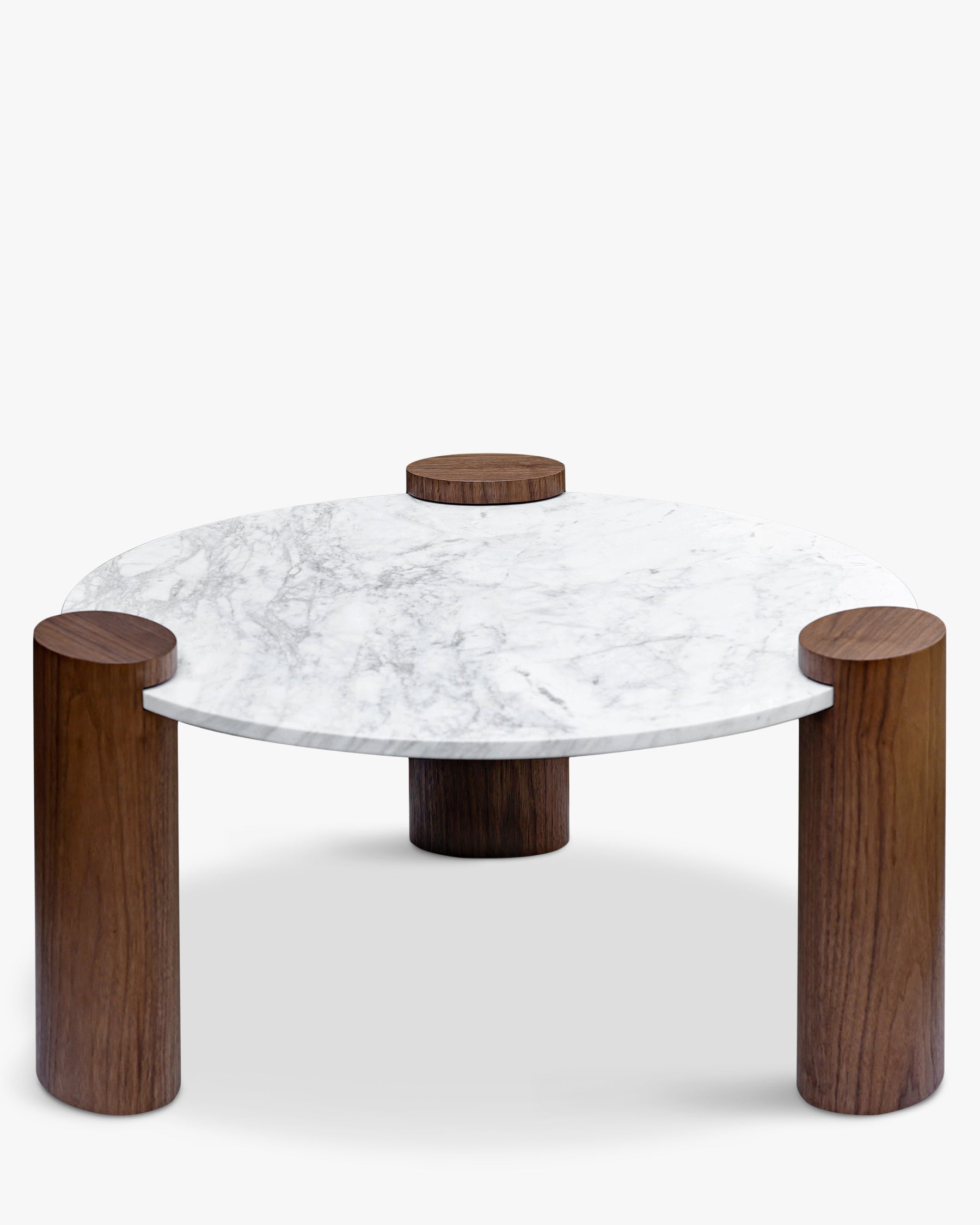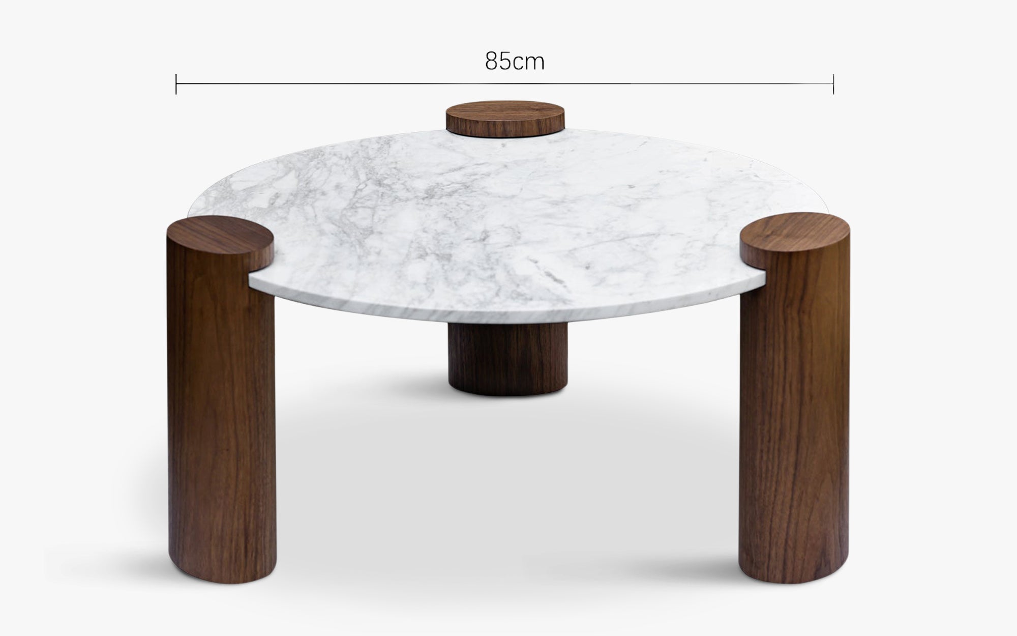 Coffee table, White marble waterproof & walnut wood, Ø90