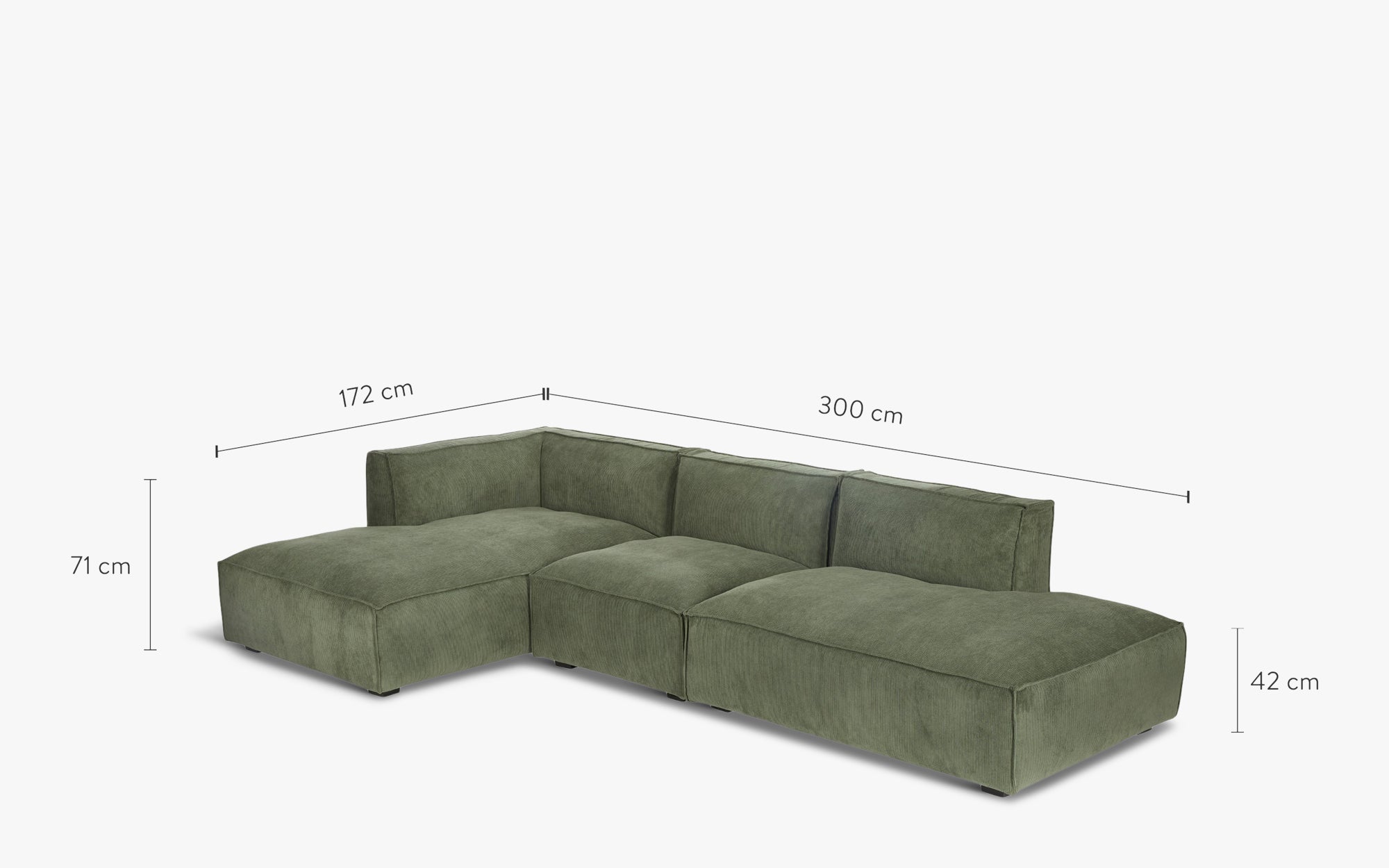 Canapé angle droit, Velours côtelé vert eucalyptus anti-tâches, L300