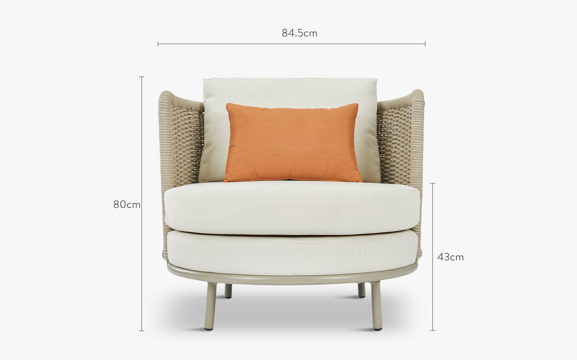 Outdoor armchair, Waterproof white fabric & taupe metal