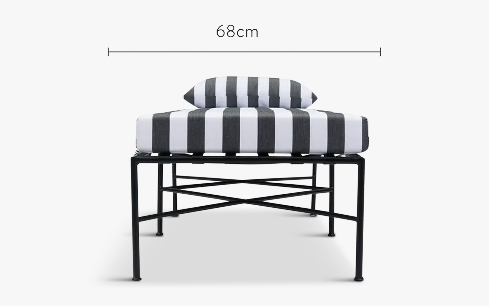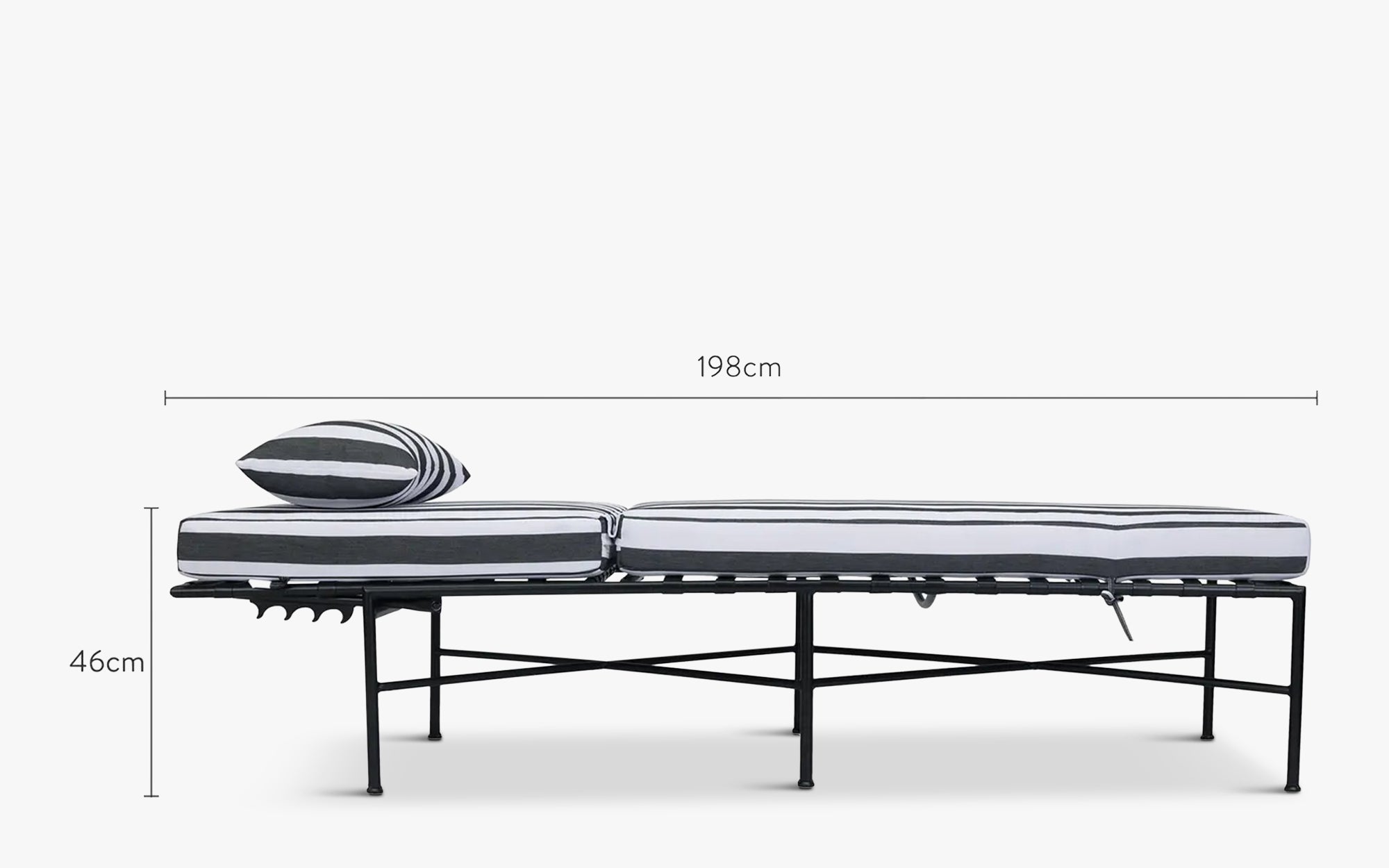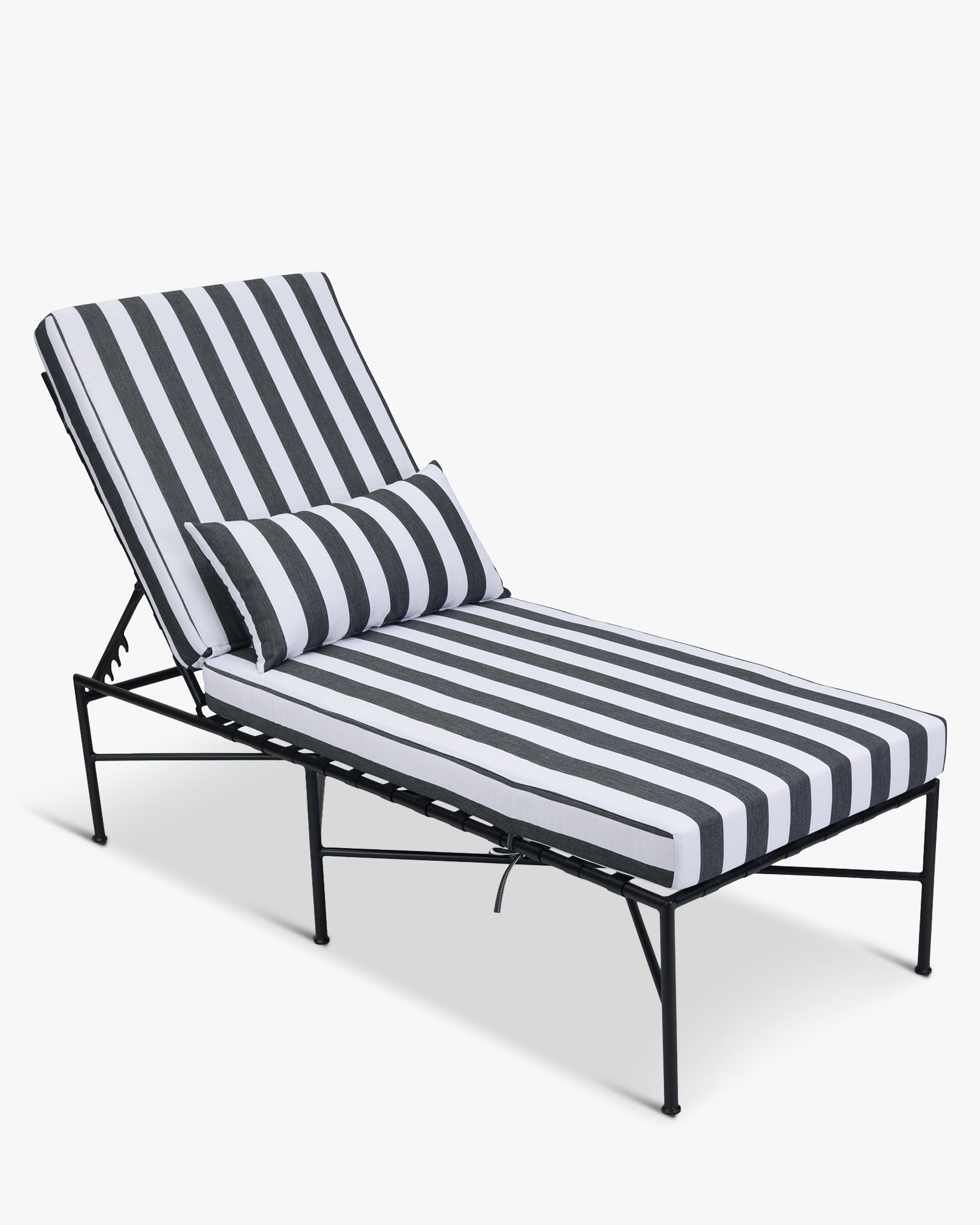 Outdoor lounge chair, Black-white waterproof fabric & black metal, L198