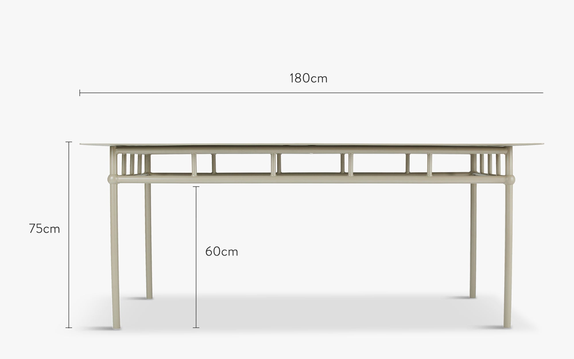Outdoor dining table, for 6-8 persons, Taupe metal waterproof, L180