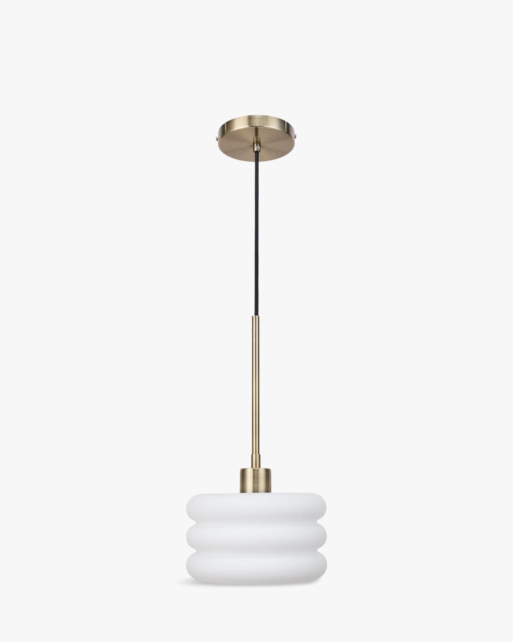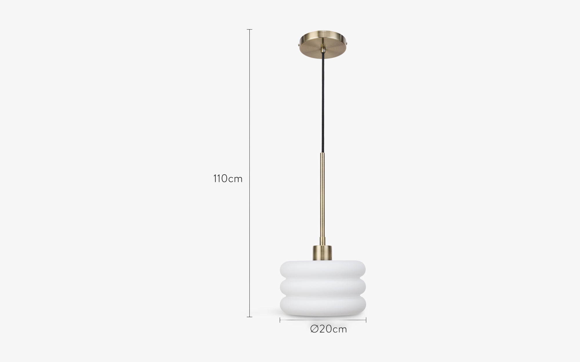 Sospensione, Vetro bianco e metallo dorato, regolabile Ø20