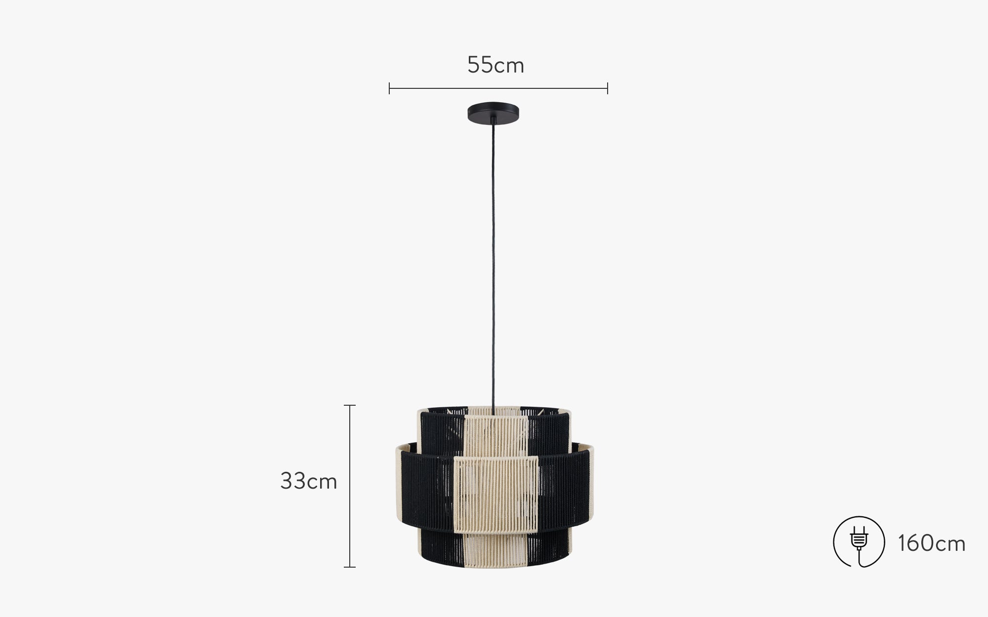 Pendant light, Black & ivory jute