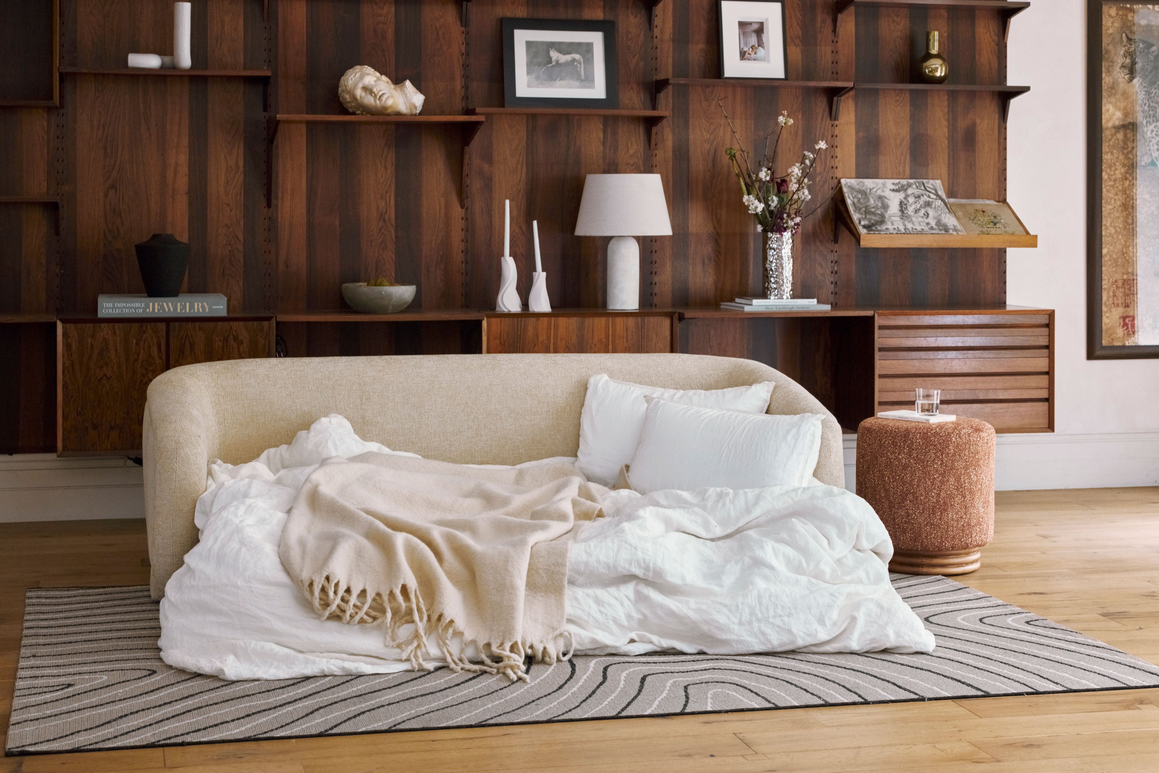Read our returns policyThe Volta Retro and Cocooning convertible sofa seduces with its seventies design and its warm and welcoming comfort.