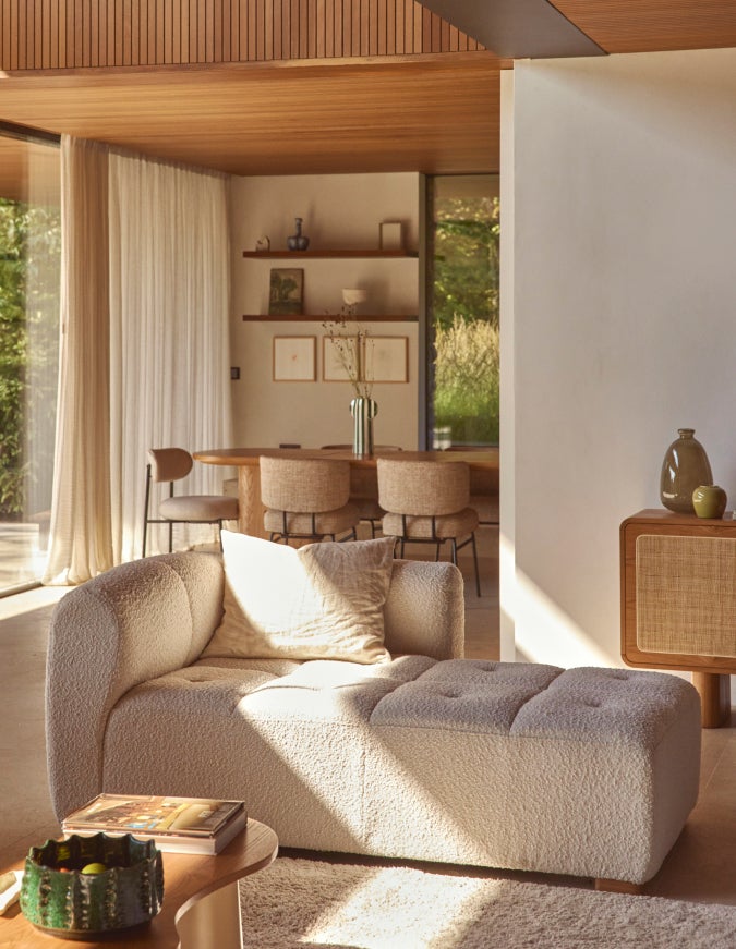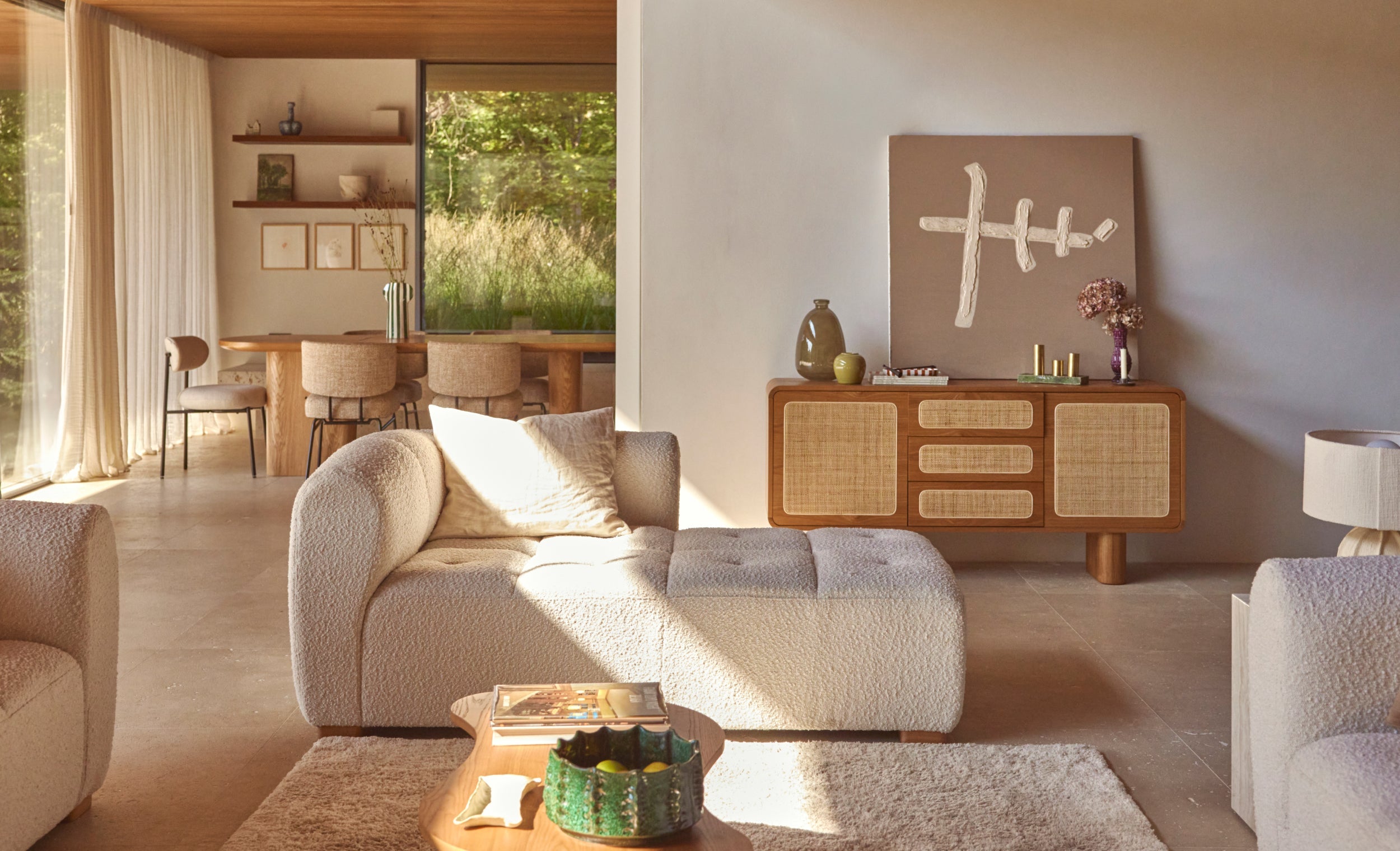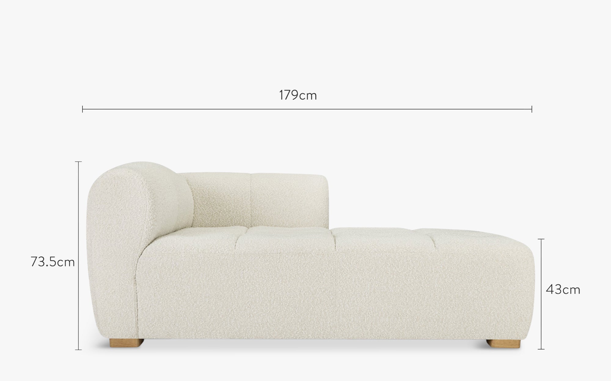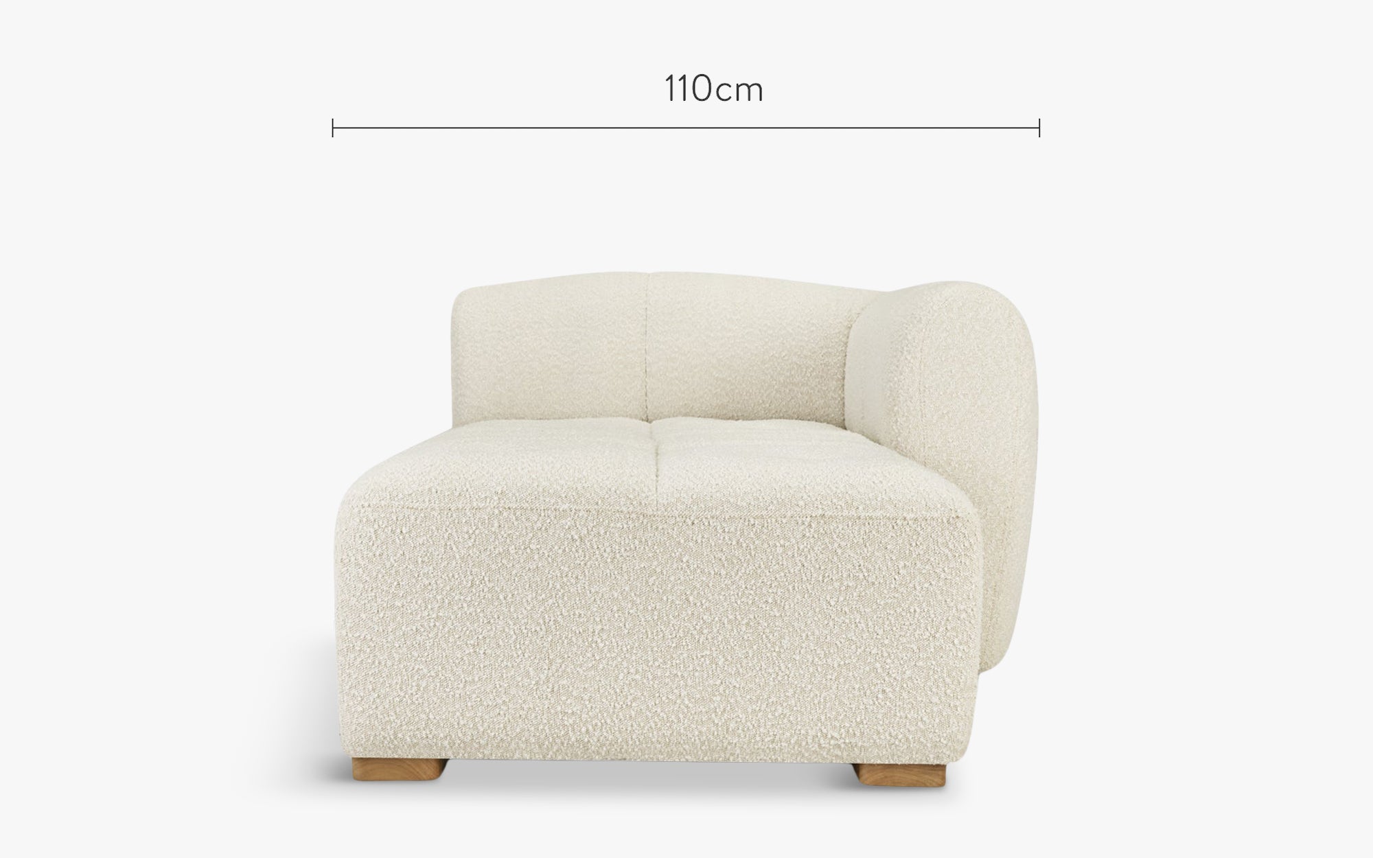The BELIZE corner armchair, with its soft curves and rounded design, is a real invitation to relax. Its cozy and enveloping design embodies both elegance and comfort, all reinforced by an oatmeal white bouclé fabric, certified Standard 100 by OEKO TEX. Its rounded appearance emanates from its seams, made both on its seat and on its backrest, giving it relief and volume. Its neat design and harmonious curves, as soft to the eye as to the touch, make it the centerpiece of any living room. Modern, classic, Scandinavian or even minimalist... The BELIZE corner armchair is one of those strong yet timeless pieces, to which we become attached at first glance.