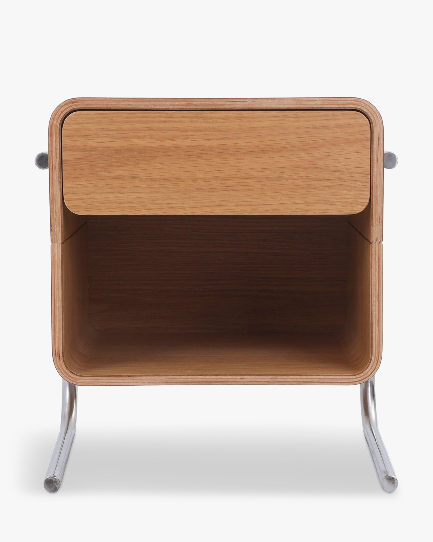 Mesilla de noche, Madera de roble veteada y acero cromado, H50