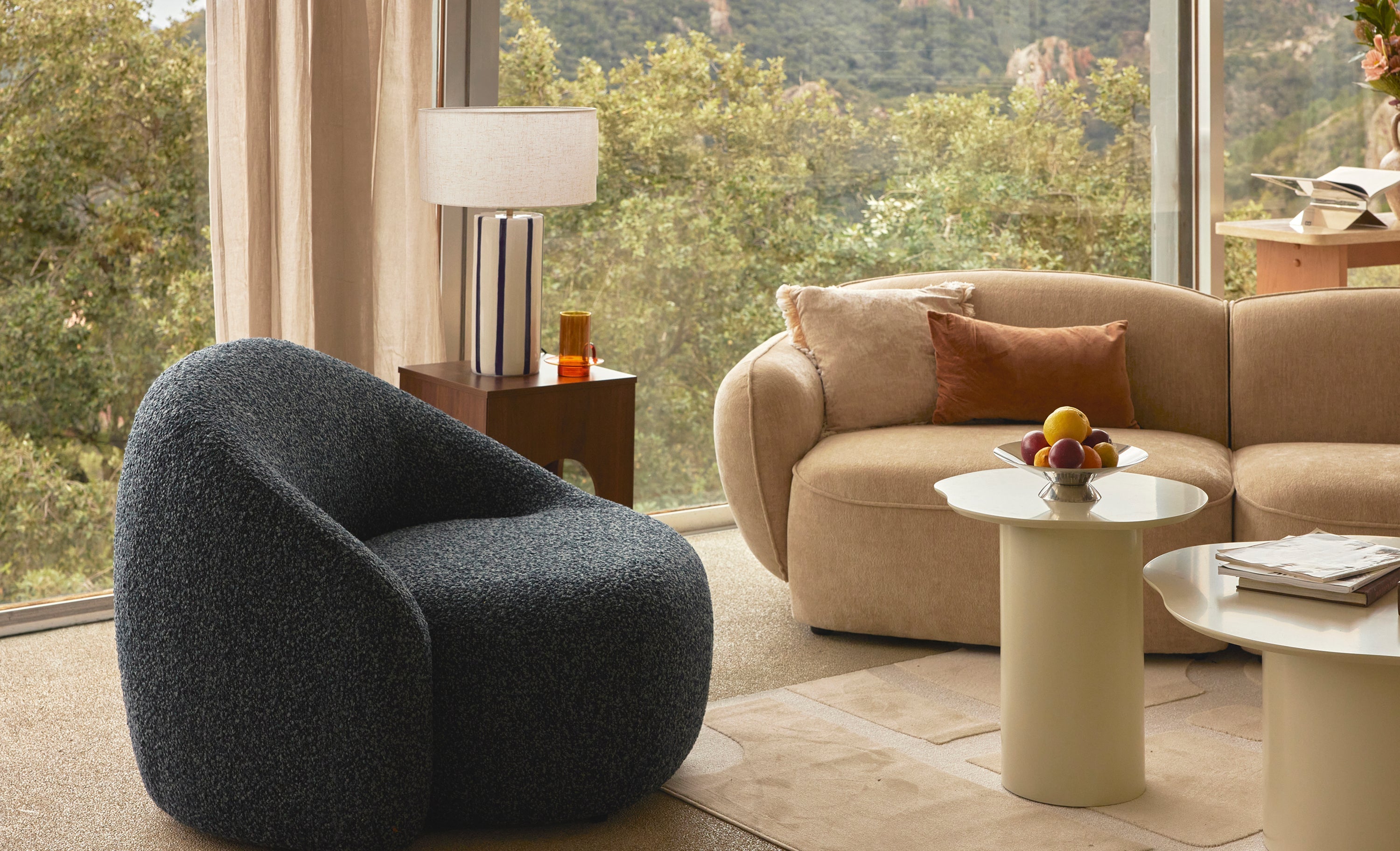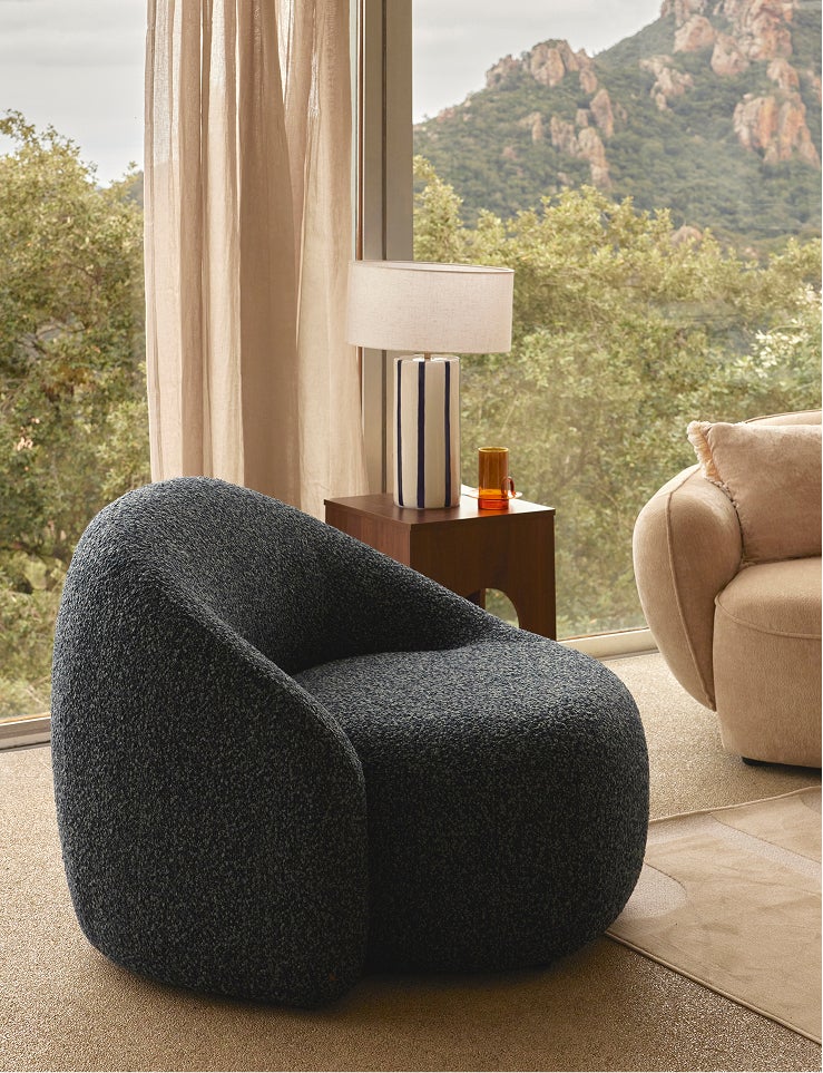 Lire nos conditions de retoursFauteuil NEO au design asymétrique, structure FSC et tissu OEKO-TEX. Canapés assortis et accessoires pour un salon chaleureux.
