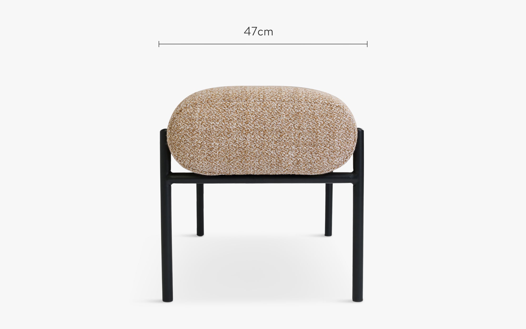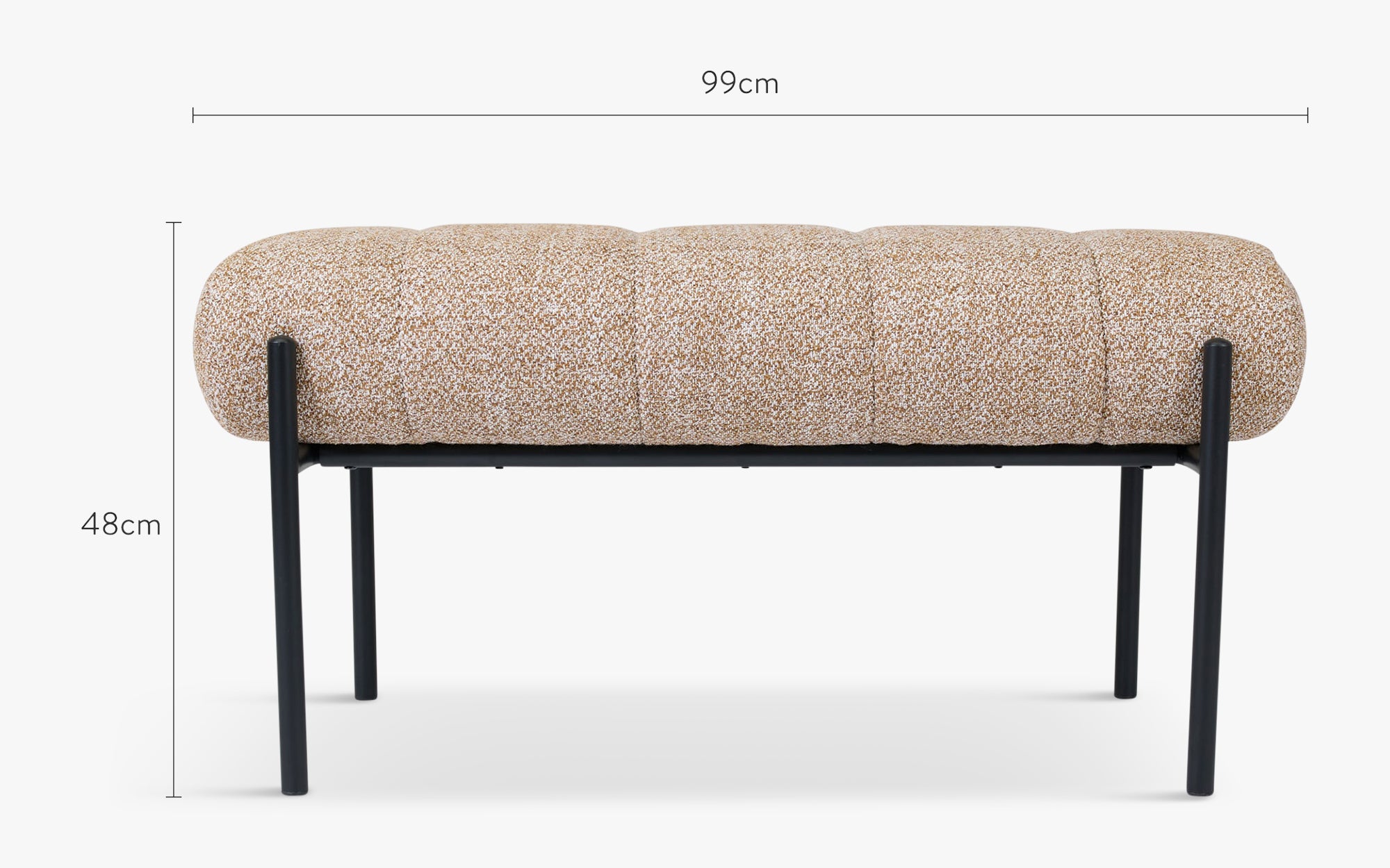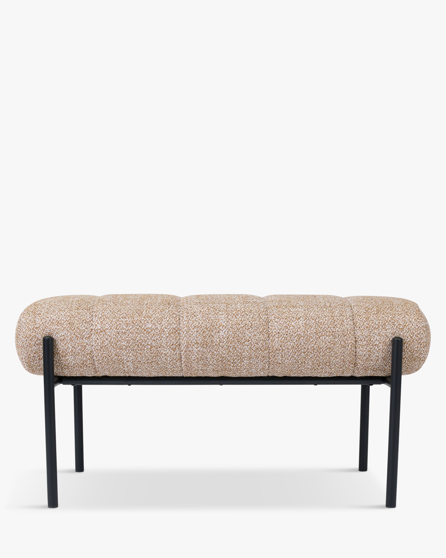 Le banc COBA, élégant et fonctionnel, existe en tweed marron Sahara ou jaune, sur pieds noirs, pour un style chaleureux et raffiné.