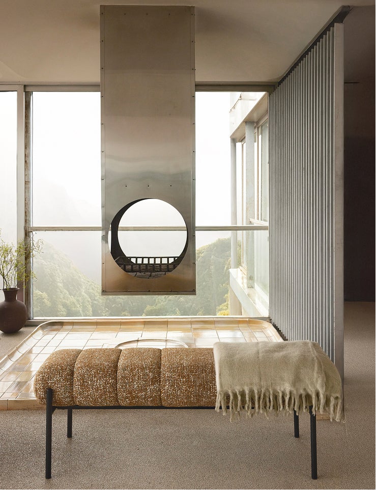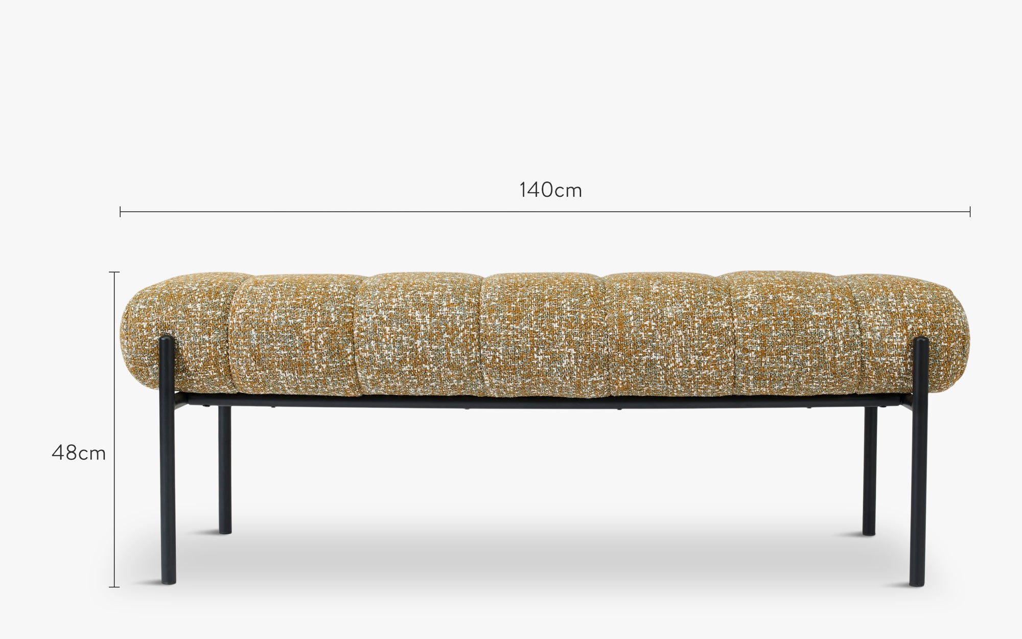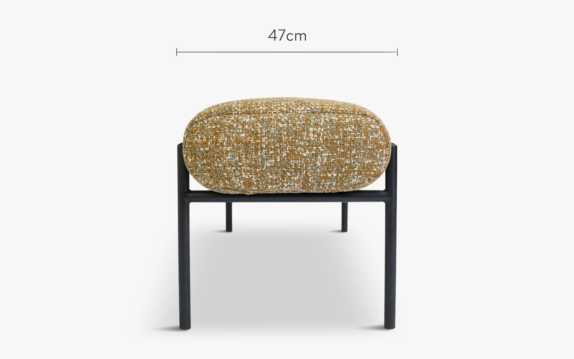 Lire nos conditions de retoursLe banc COBA, élégant et fonctionnel, existe en tweed marron Sahara ou jaune, sur pieds noirs, pour un style chaleureux et raffiné.