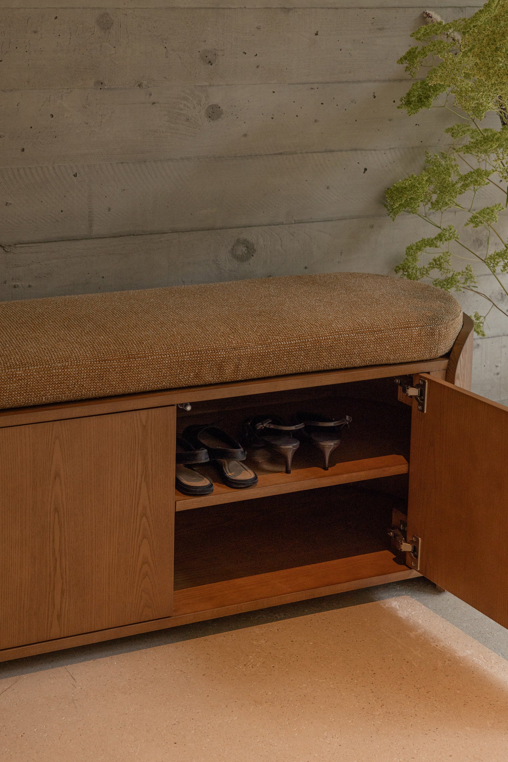 Banc à chaussures, Bois noyer, Tweed marron, L140