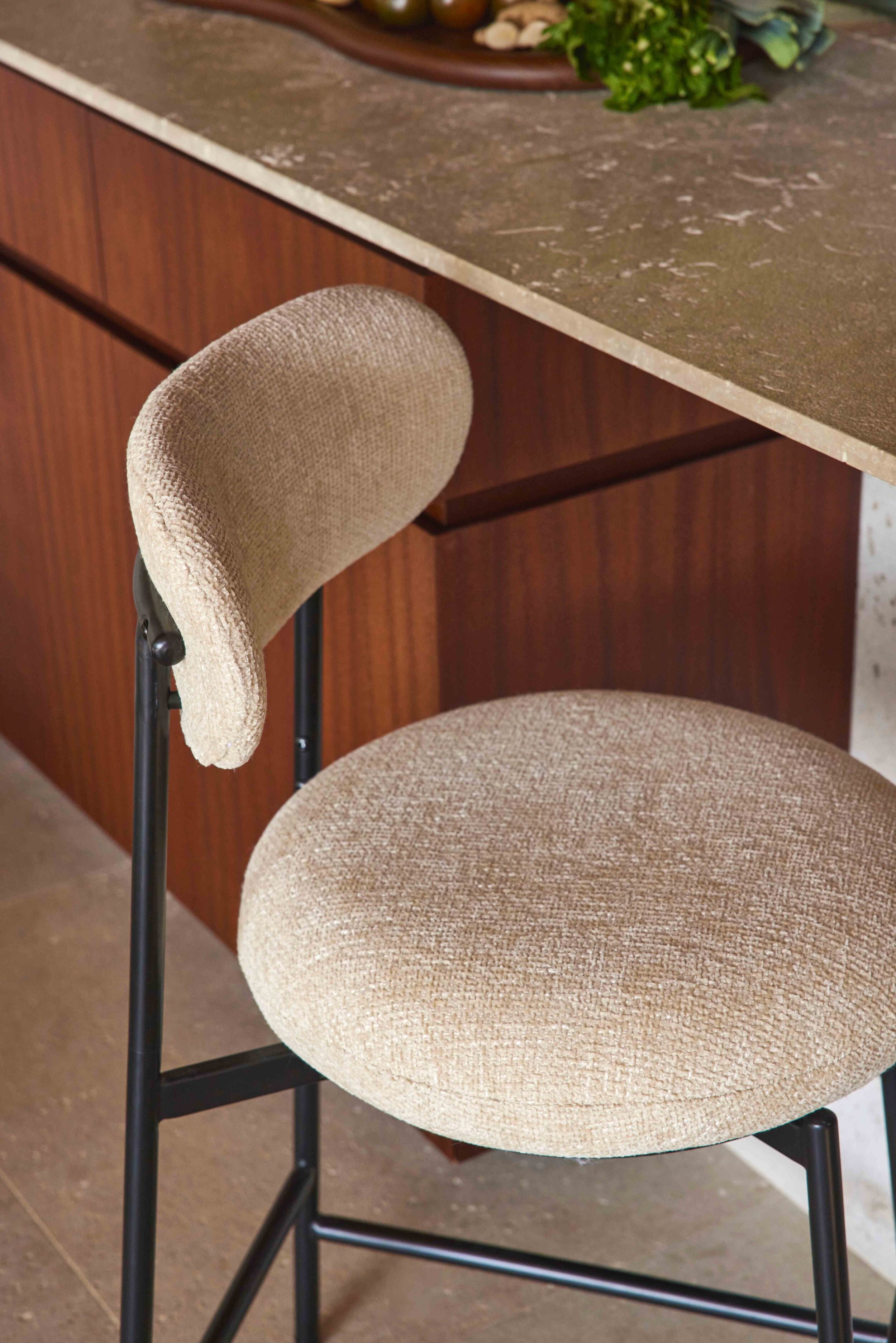 Tabouret de bar, Tweed sable & métal noir, H68