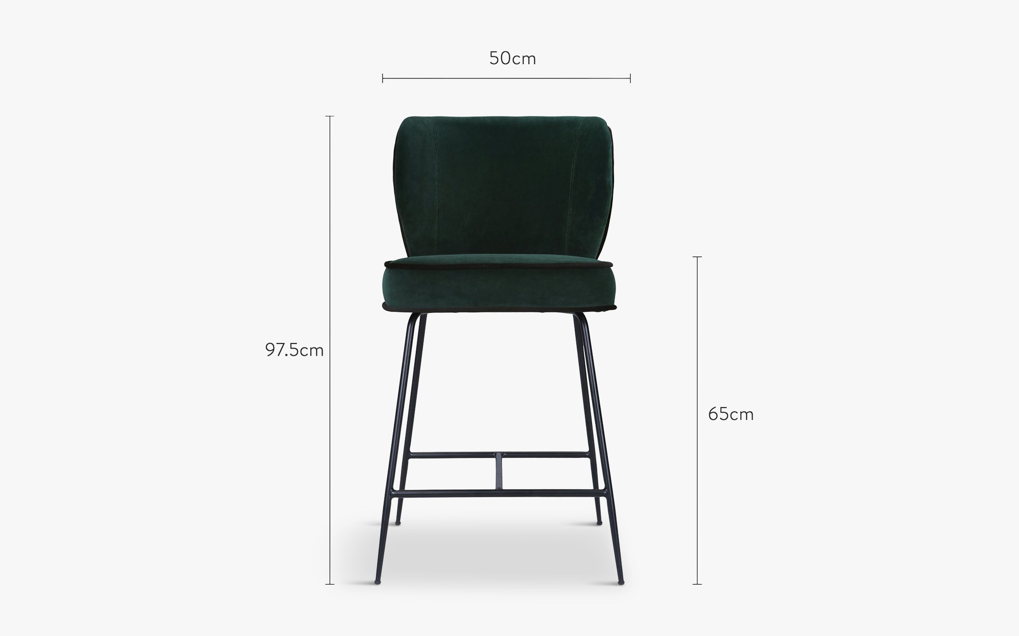 Tabouret de bar, Velours vert cèdre & métal noir, H65