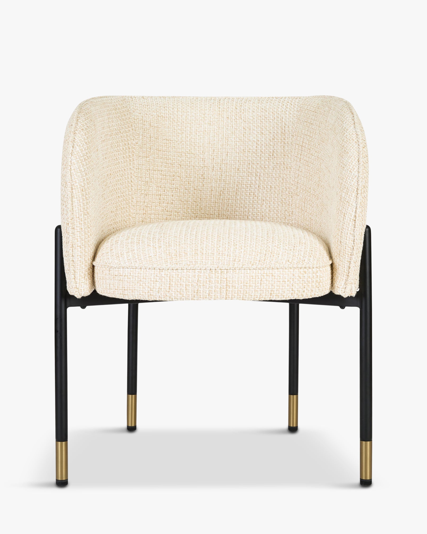 Confort et style se rencontrent dans la chaise CHUCK. Assise profonde, pieds fins avec détails en laiton, elle invite à la détente dans toutes les pièces de vie.