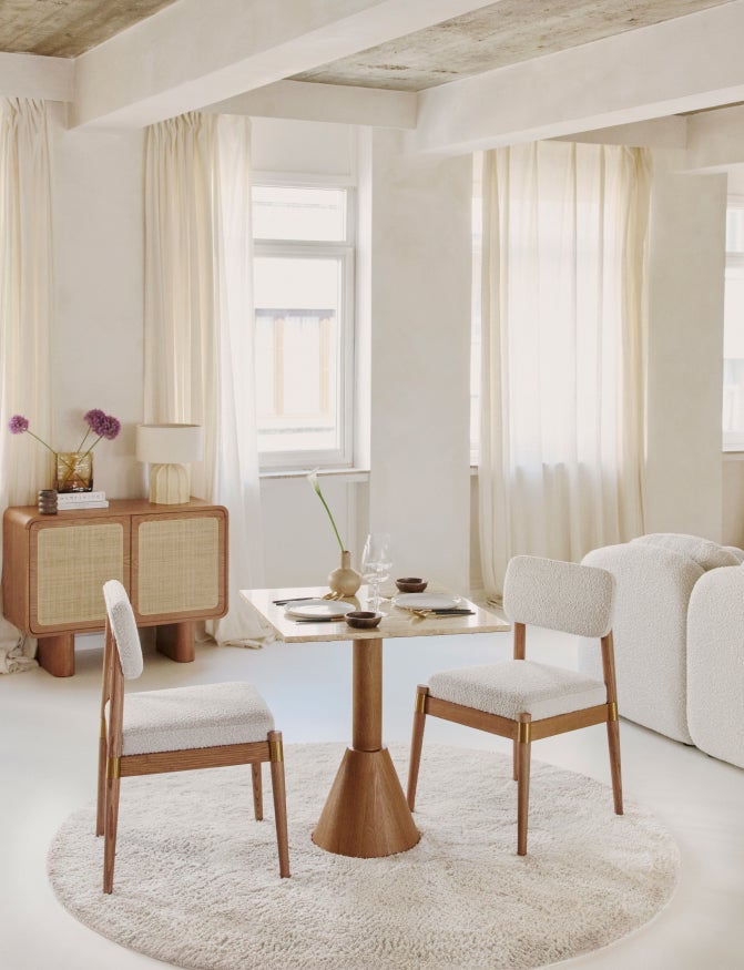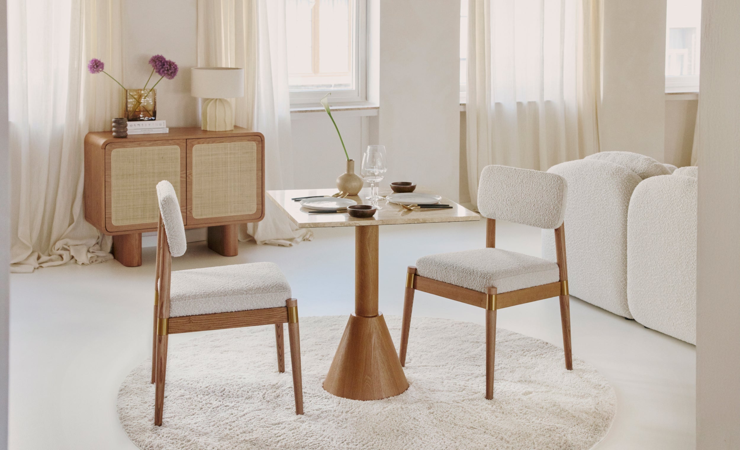 La chaise LILAY a réussi le pari de réunir la chaleur du bois blond et le confort de son assise. Sa silhouette épurée, aux lignes simples et élégantes, s’intègre harmonieusement parmi divers styles de décoration, du scandinave au contemporain. Son assise en bouclé blanc ajoute une touche de douceur, ainsi qu’un confort qui permet de rester aussi longtemps que nécessaire à table, sans jamais peiner. Dans la salle à manger, le séjour ou dans une grande cuisine, elle devient un véritable allié du quotidien sur laquelle on mange, travaille, flâne, boit un café, discute ou lance une partie de jeu de société.
