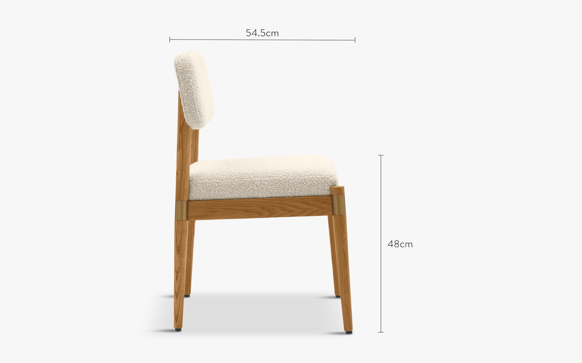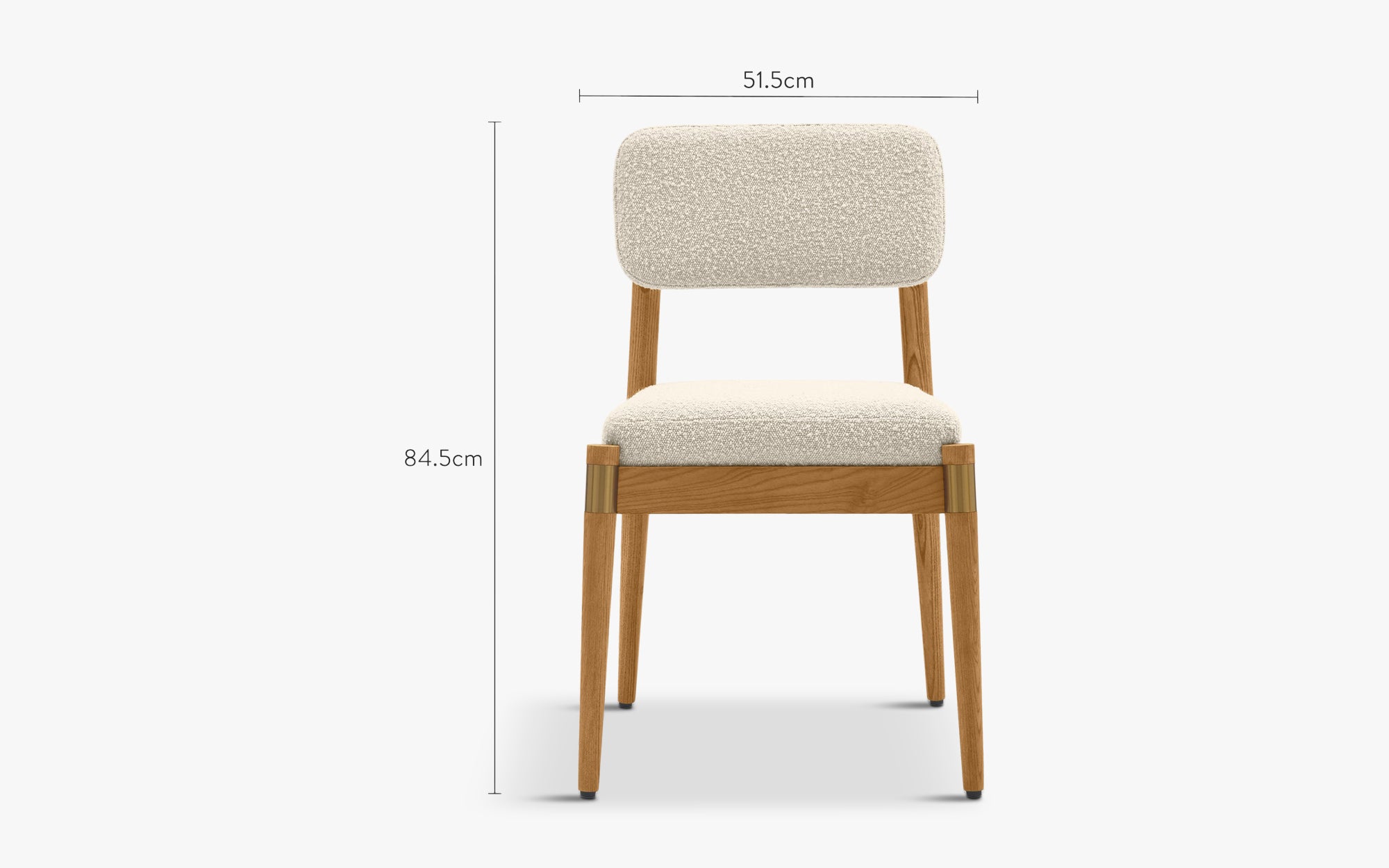 Les détails en laiton de la chaise LILAY apportent à son ensemble en bois blond et bouclé un caractère certain, qui accroche et retient le regard. Pensée pour convenir aussi bien aux particuliers qu’aux professionnels, propriétaires de restaurants ou d’hôtels, elle adoucit le quotidien en apportant singularité et design à l’espace où vous l’installerez. Dans une maison ou un appartement, elle se plaira dans la salle à manger, ou en tant que chaise de bureau, offrant une assise confortable pour les longues sessions de travail. Sa polyvalence et son esthétique en font un choix idéal pour apporter design et fonctionnalité au quotidien.
