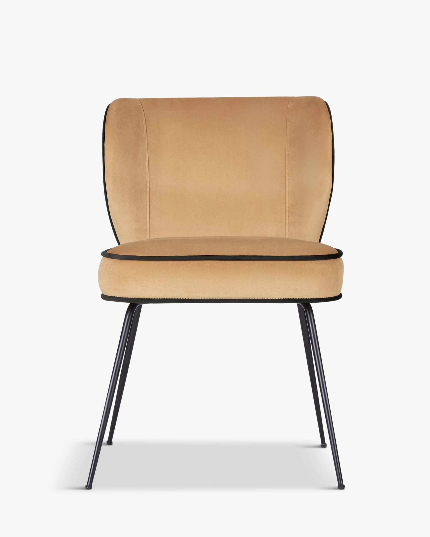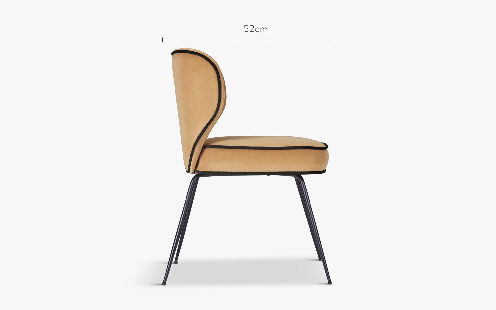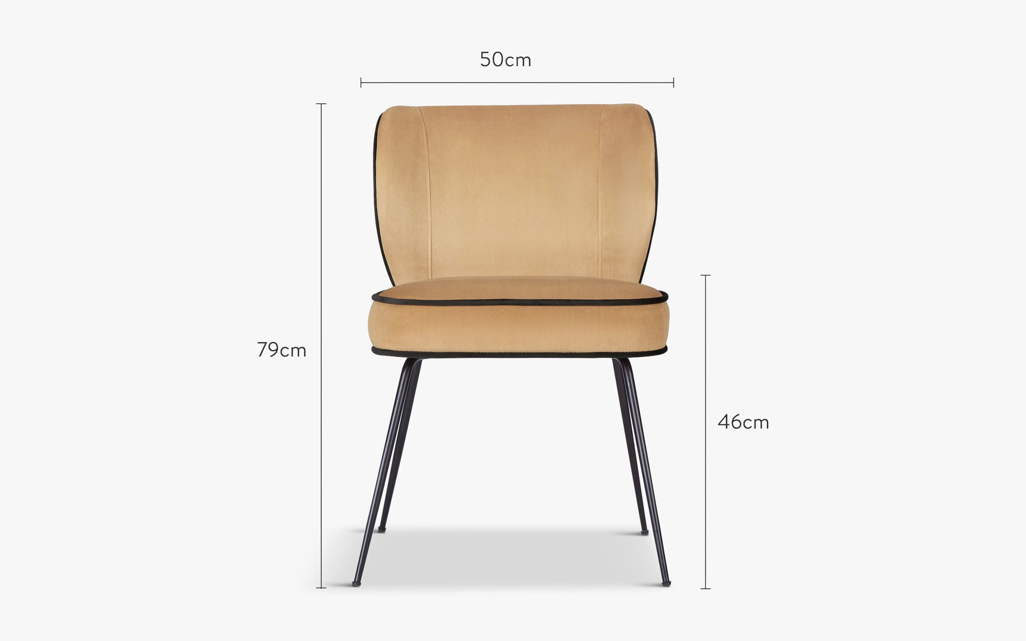 Lire nos conditions de retoursLa chaise WAYNE, lignes fines et assise confortable, existe en velours bleu pétrole, gris, jaune… Chic et cosy, elle complète salle à manger ou salon.