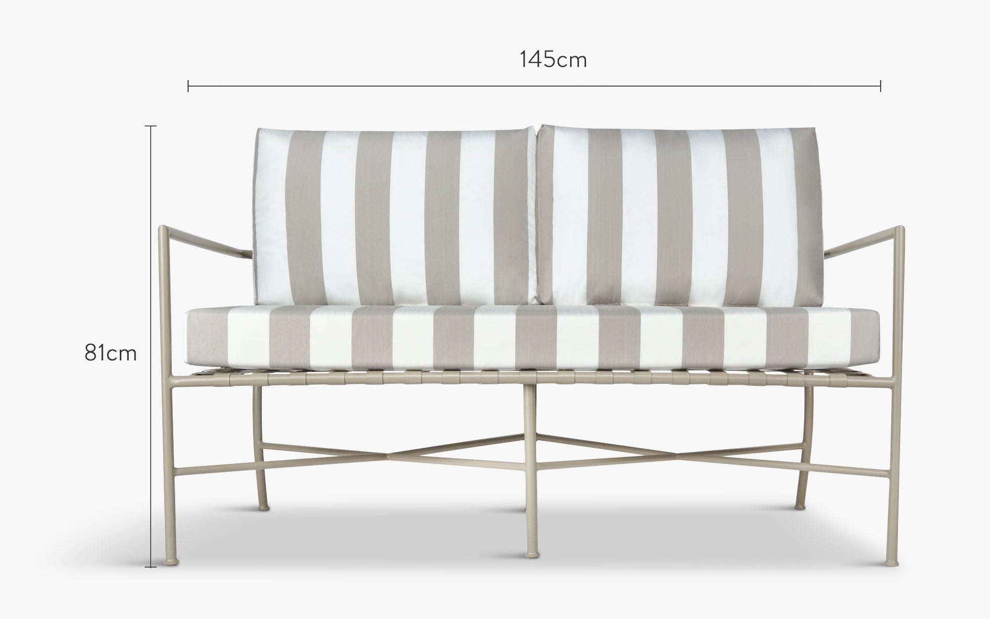 Canapé 2 places outdoor, Rayures taupe waterproof noir-blanc & métal noir, L145