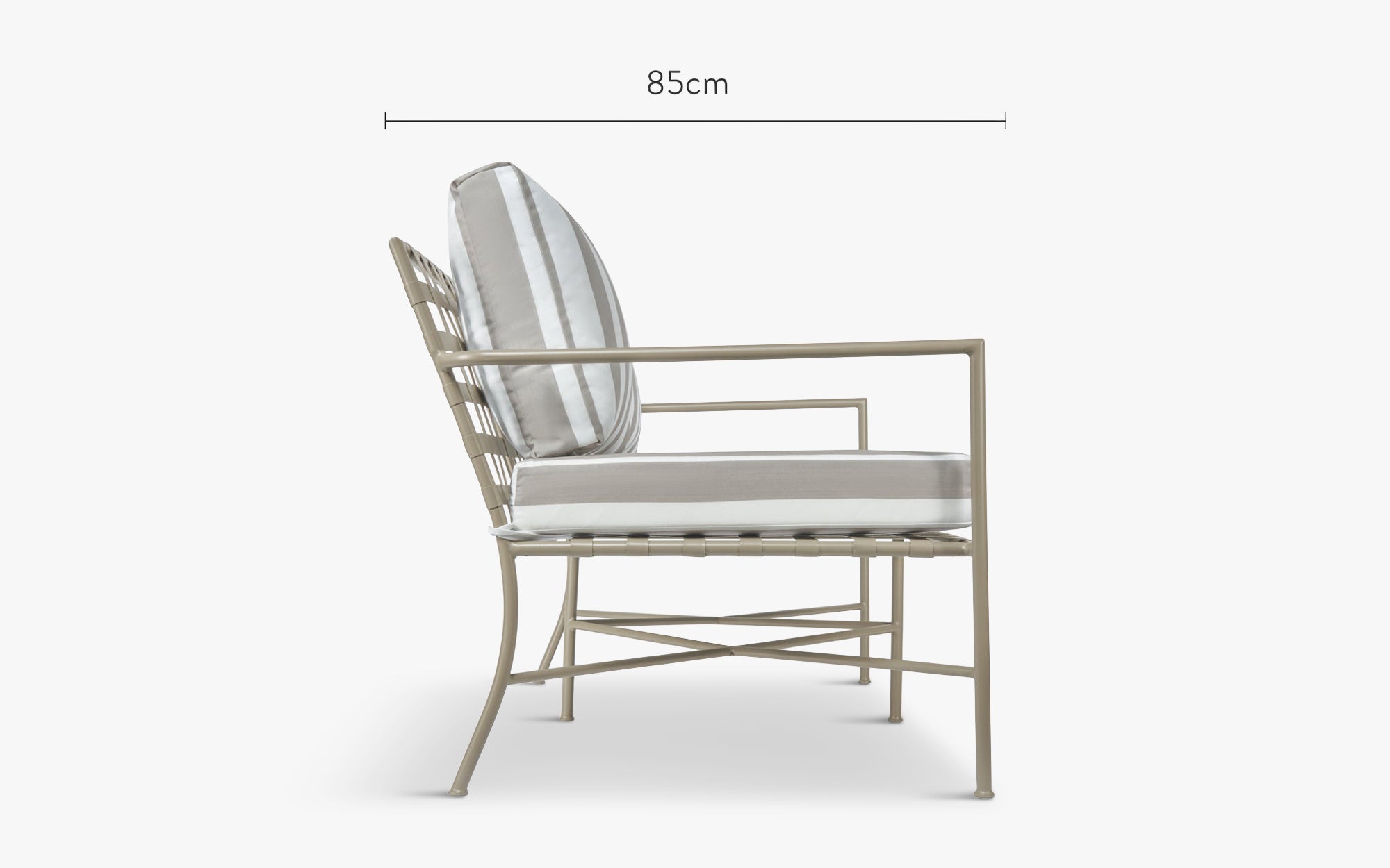 Lire nos conditions de retoursCollection BEL AIR en acier taupe, élégante et raffinée, idéale pour créer un coin détente stylé.