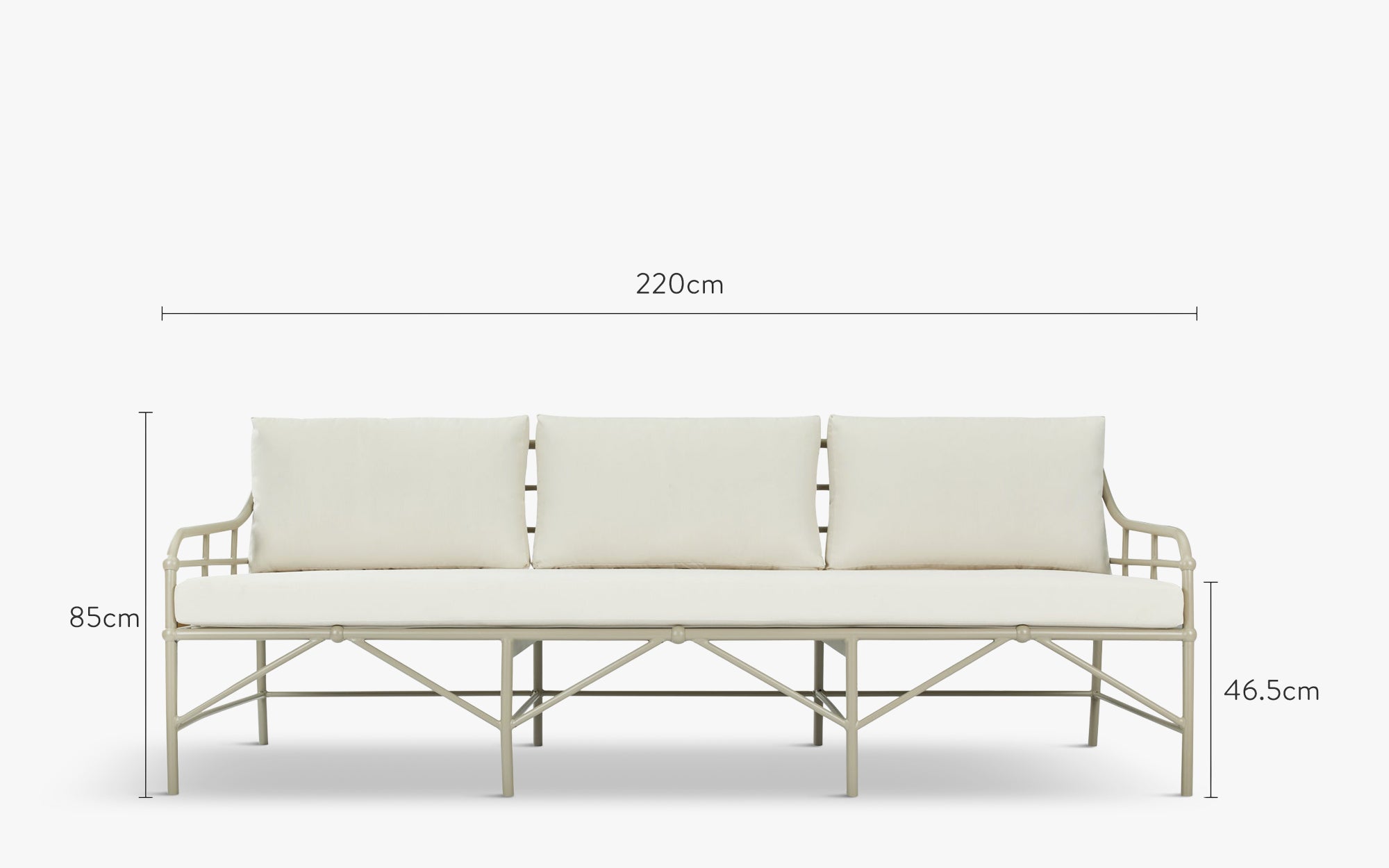 Canapé 3 places outdoor, Blanc waterproof & métal taupe, L220