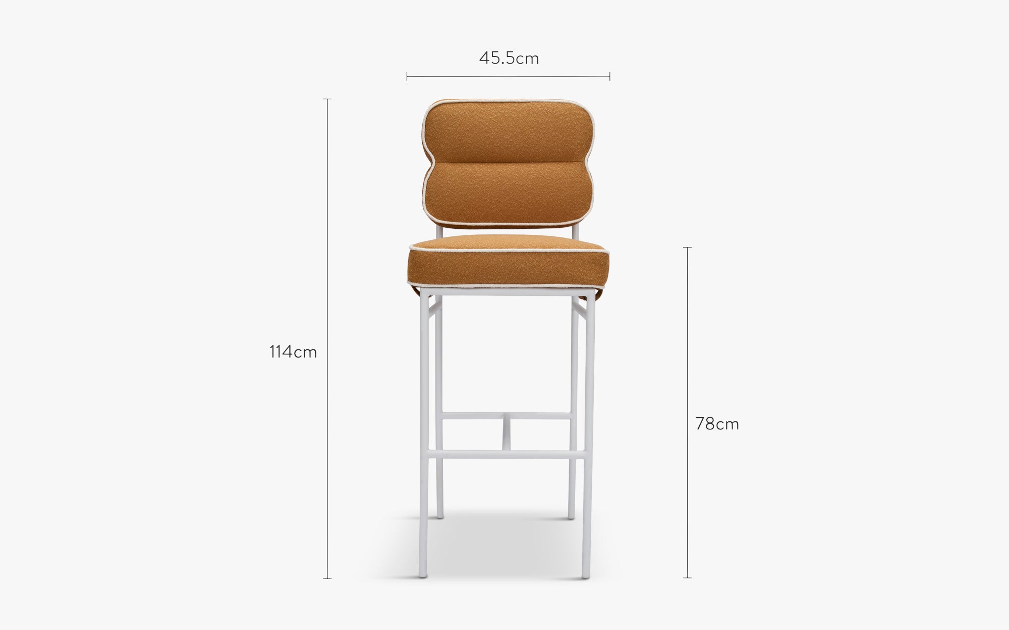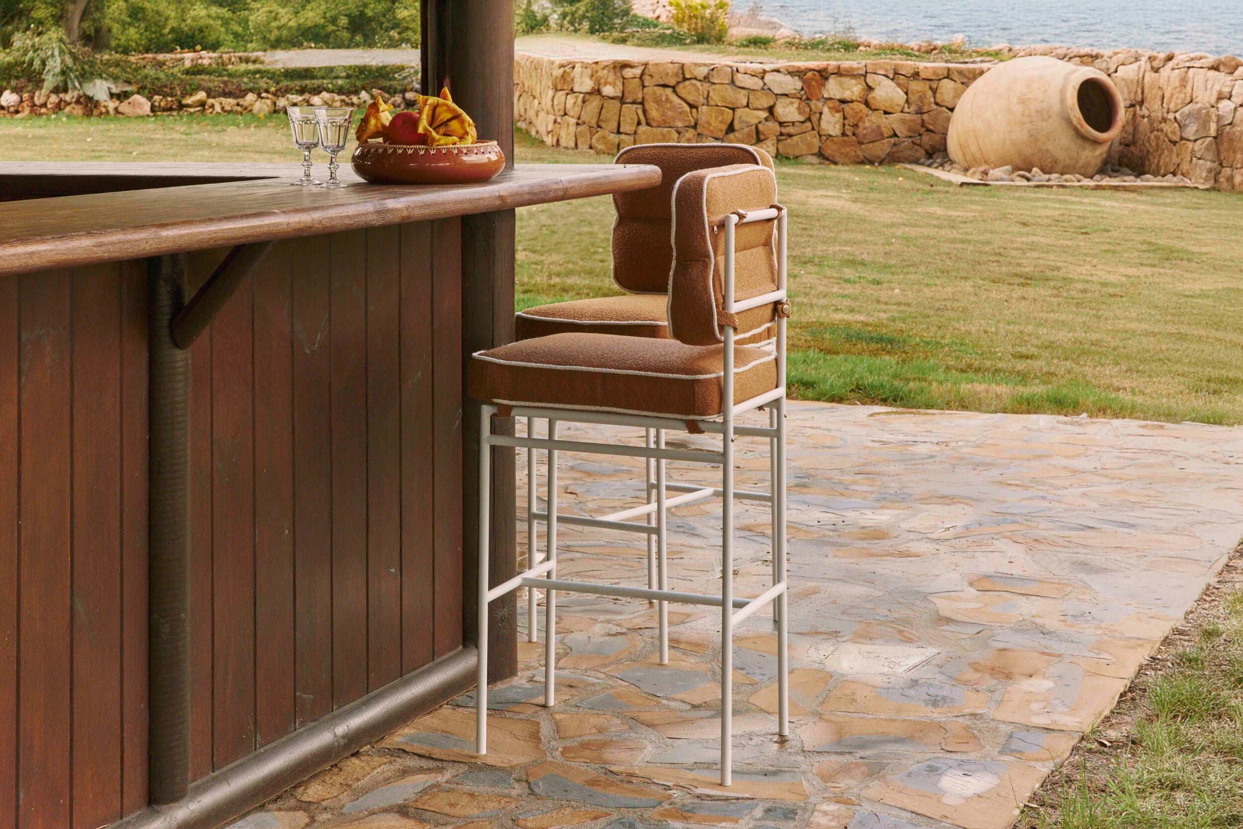 La chaise de bar MADDALENA : élégance et caractère Le design minimaliste et raffiné de la chaise de bar MADDALENA séduit au premier coup d’œil. Ses grands pieds fins en fer apportent une légèreté visuelle à l’ensemble, tout en lui assurant une grande stabilité. Son dossier rembourré et son assise carrée lui confèrent une allure aussi sobre que sophistiquée. Déclinée en deux revêtements bouclés distincts, le marron sienne au passepoil beige évoque la chaleur et l’authenticité. Le beige, lui, est davantage lumineux et doux avec le regard. L’un comme l’autre ont été conçus pour un usage en extérieur, faisant de la chaise de bar MADDALENA la première de la collection NV Gallery. Chaise d'extérieur ou d'intérieur ? D’une grande robustesse, la chaise de bar MADDALENA a été conçue à partir de matériaux idéaux pour un usage en plein air. Résistante aux intempéries ainsi qu’aux rayons UV, elle trouve sa place où que vous ayez besoin d’elle. Son design intemporel lui permettra d’être installée parmi une large variété d’extérieurs, s’associant avec divers types de transats, chaises longues et autres tables basses, constituant un salon de jardin aussi pratique que convivial. Il est tout à fait possible de déplacer la chaise de bar MADDALENA en intérieur lorsque l’automne approche et jusqu’au printemps, afin d’en profiter tout au long de l’année, peu importe la météo.
