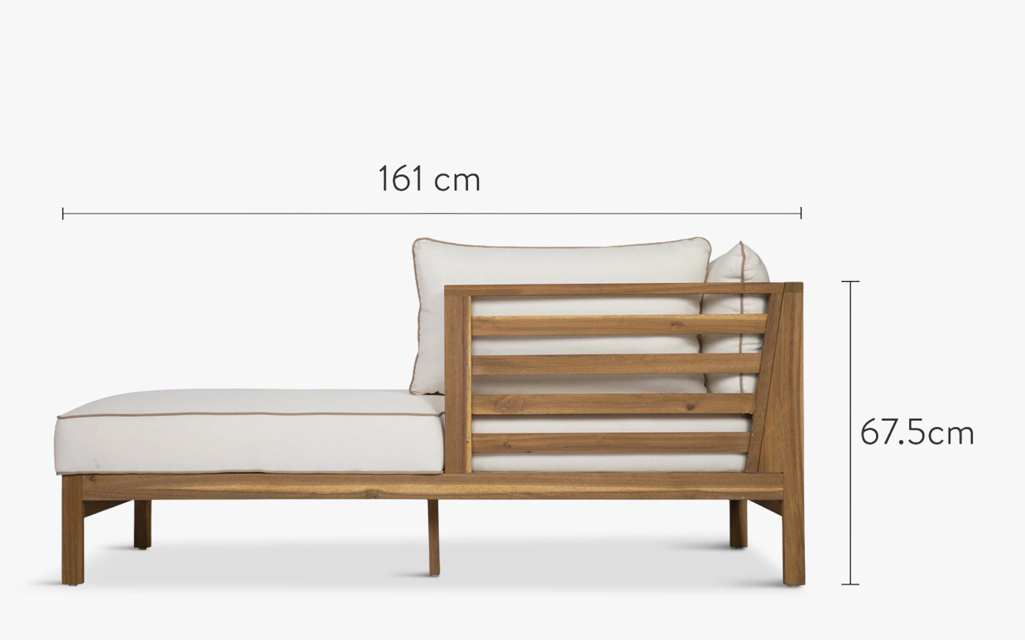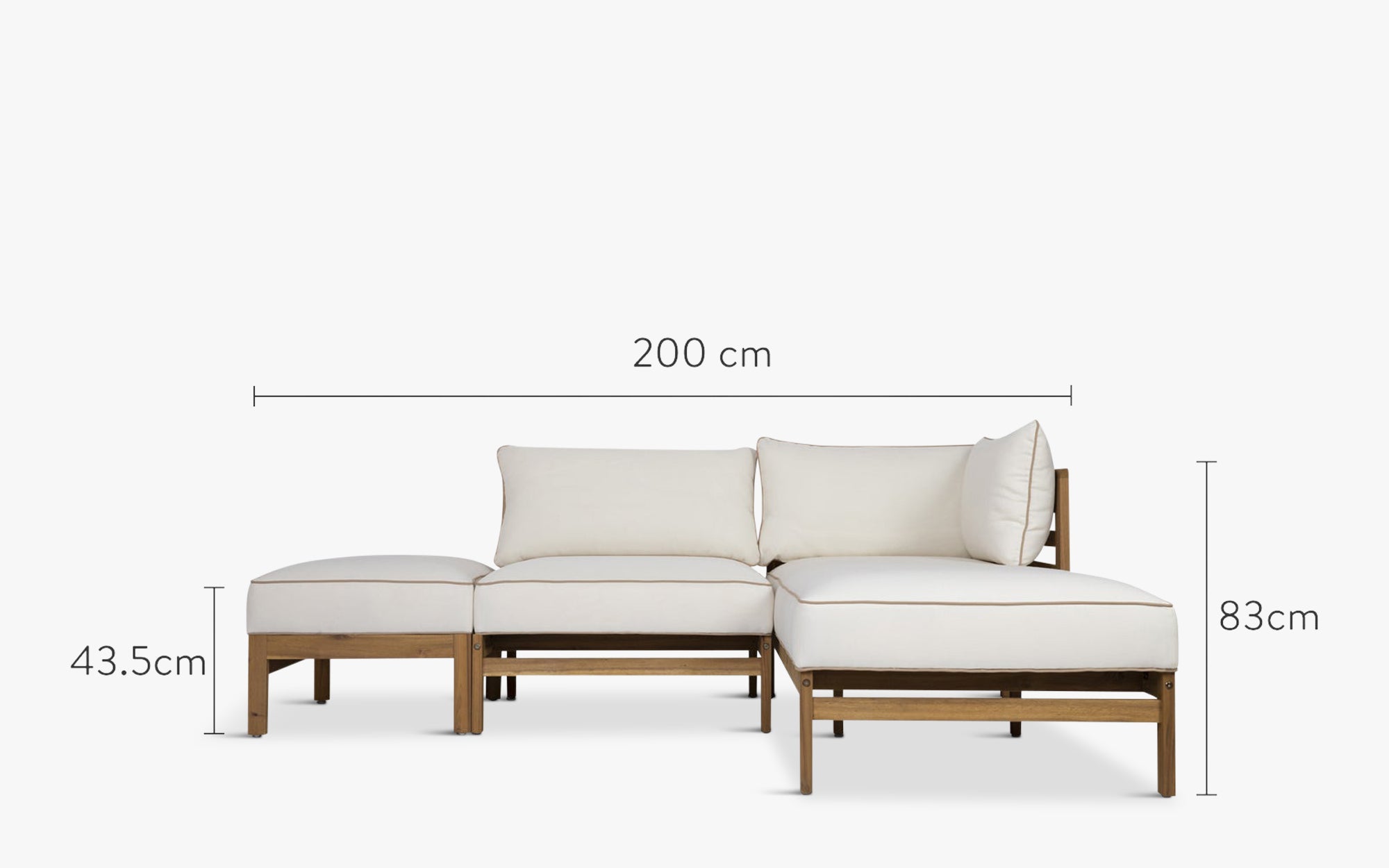 Canapé angle droit modulable outdoor, Blanc crème waterproof & bois d'acacia, L200