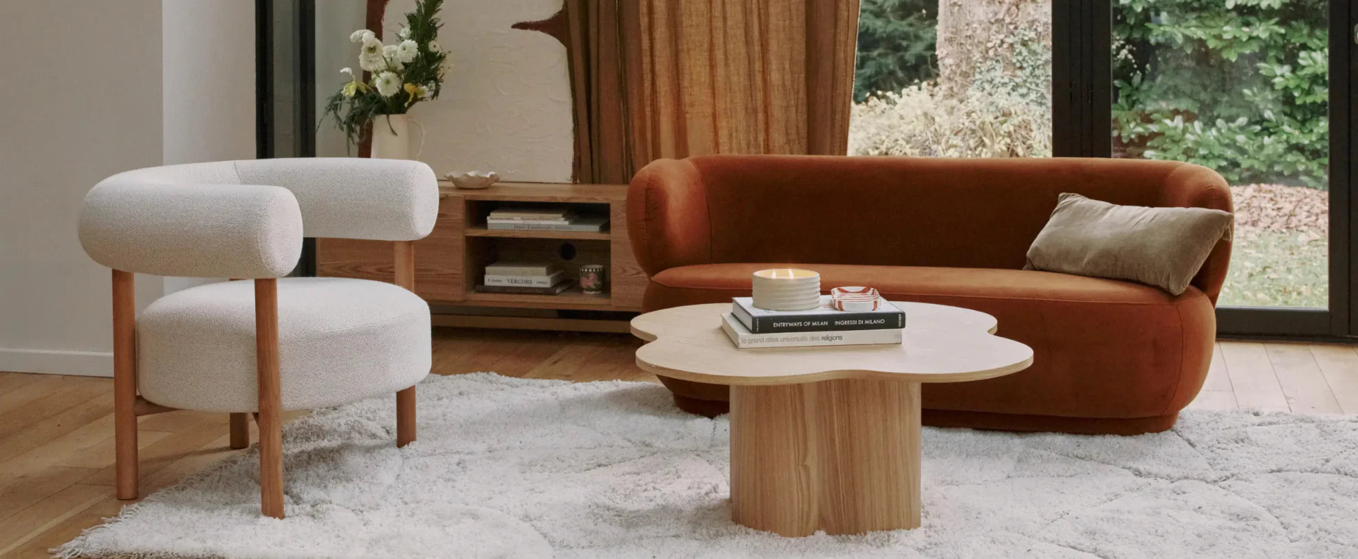 Le bois clair se marie à merveille avec des accessoires décoratifs bien choisis. Ajoutez des tapis aux textures douces, des coussins aux teintes pastel ou même des luminaires originaux pour sublimer vos meubles. Un tapis berbère, par exemple, peut rehausser une table basse en bois clair en apportant une touche d’authenticité. Les plantes vertes sont également une excellente idée pour compléter un intérieur en bois clair. Elles accentuent le côté naturel et apportent de la fraîcheur à votre décoration. Installez des plantes suspendues près d’une étagère en bois ou placez une grande plante d’intérieur à côté d’un buffet pour un effet immédiat.