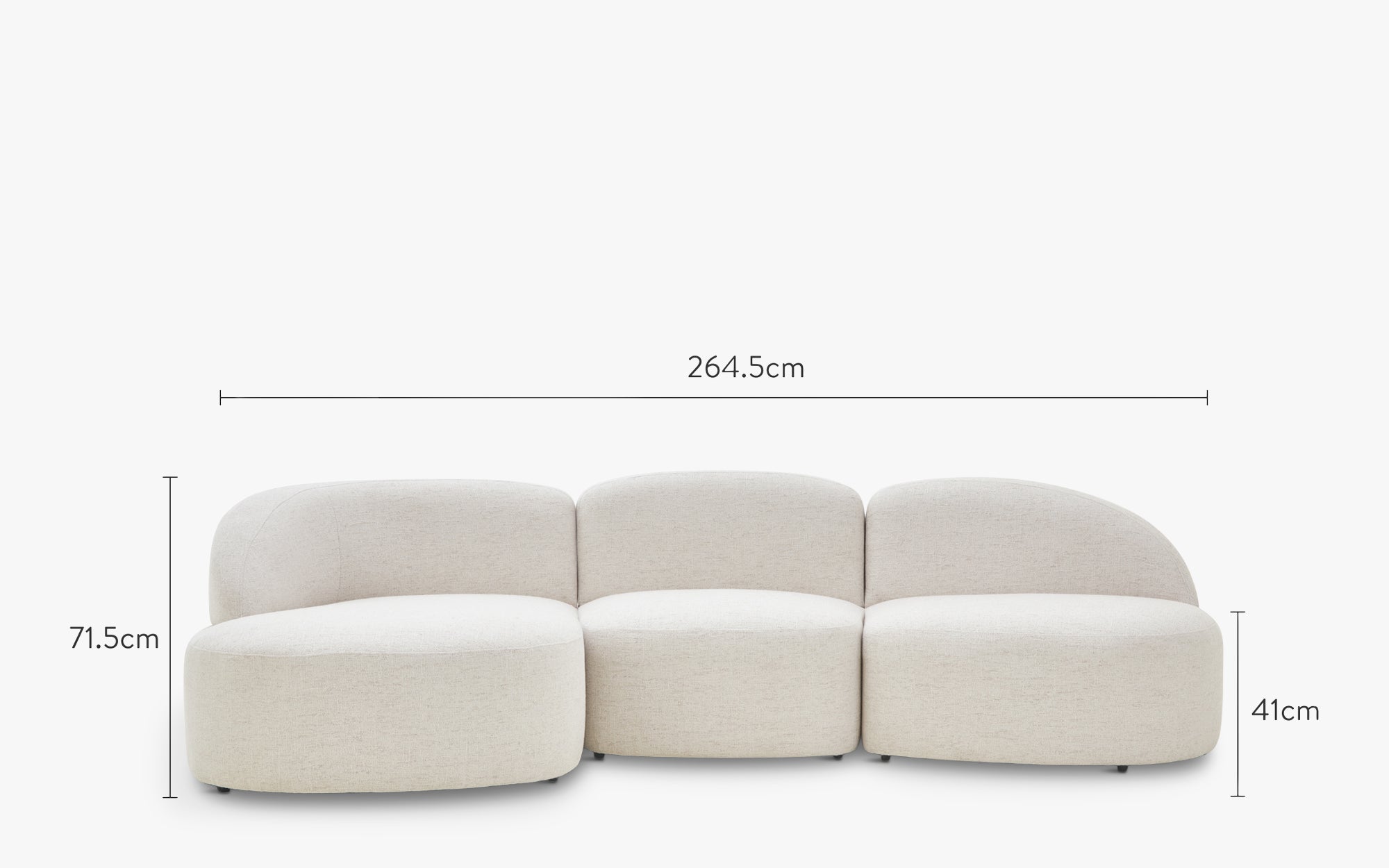 Canapé d'angle gauche, Bouclé blanc latte, L264