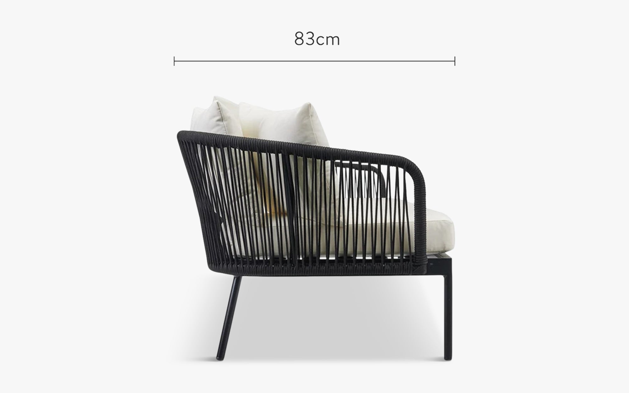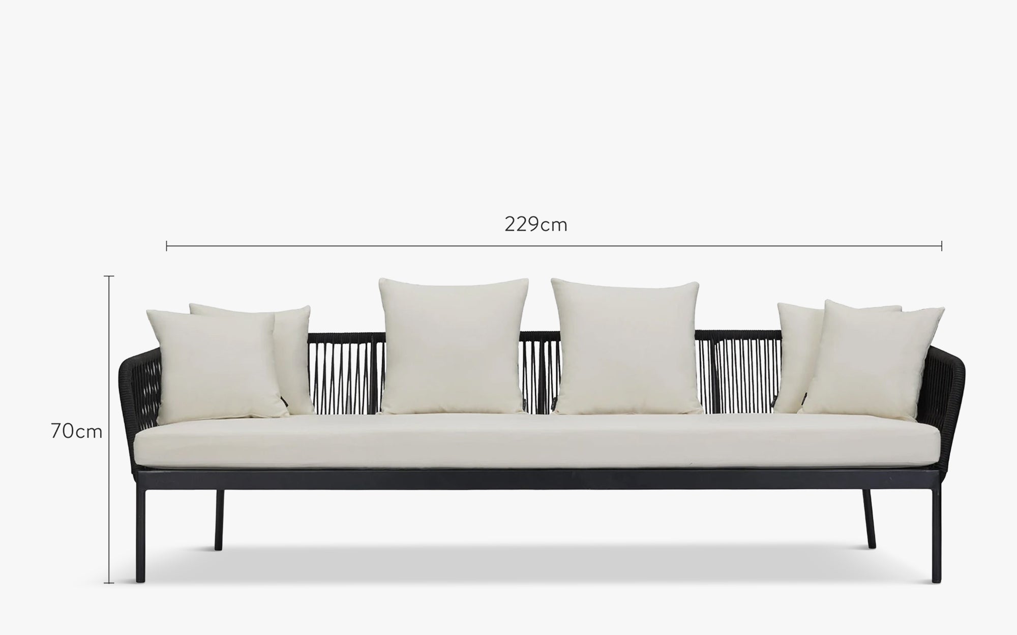 Canapé 3 places outdoor, Assise blanc écru, cordage & métal noir, L229