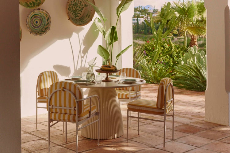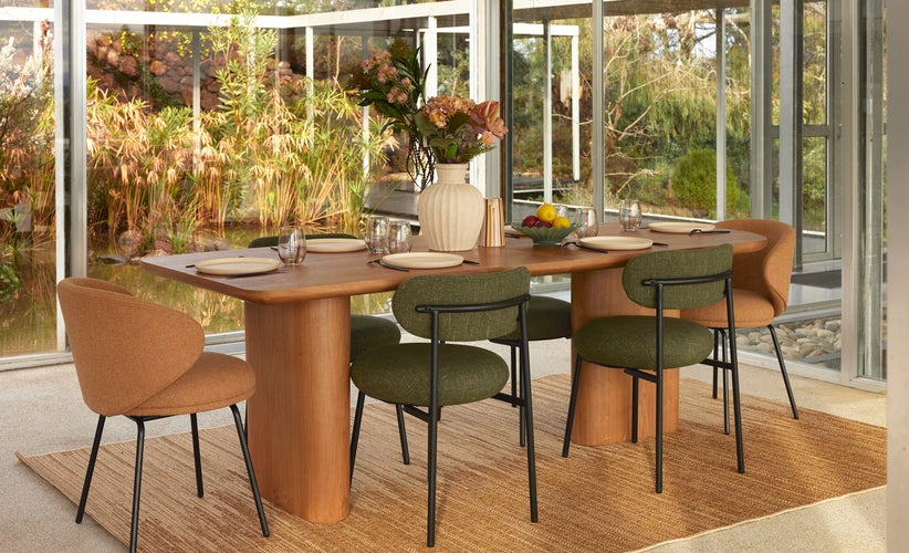Ensemble 6 chaises + table outdoor, Marron sienne + bois d'acacia