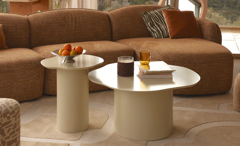Ensemble 2 tables basses indoor/outdoor, Fibre de verre ecru
