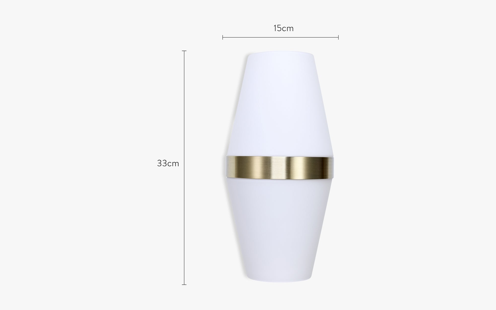 Lampada a sospensione o a parete, vetro bianco e metallo color ottone, H33