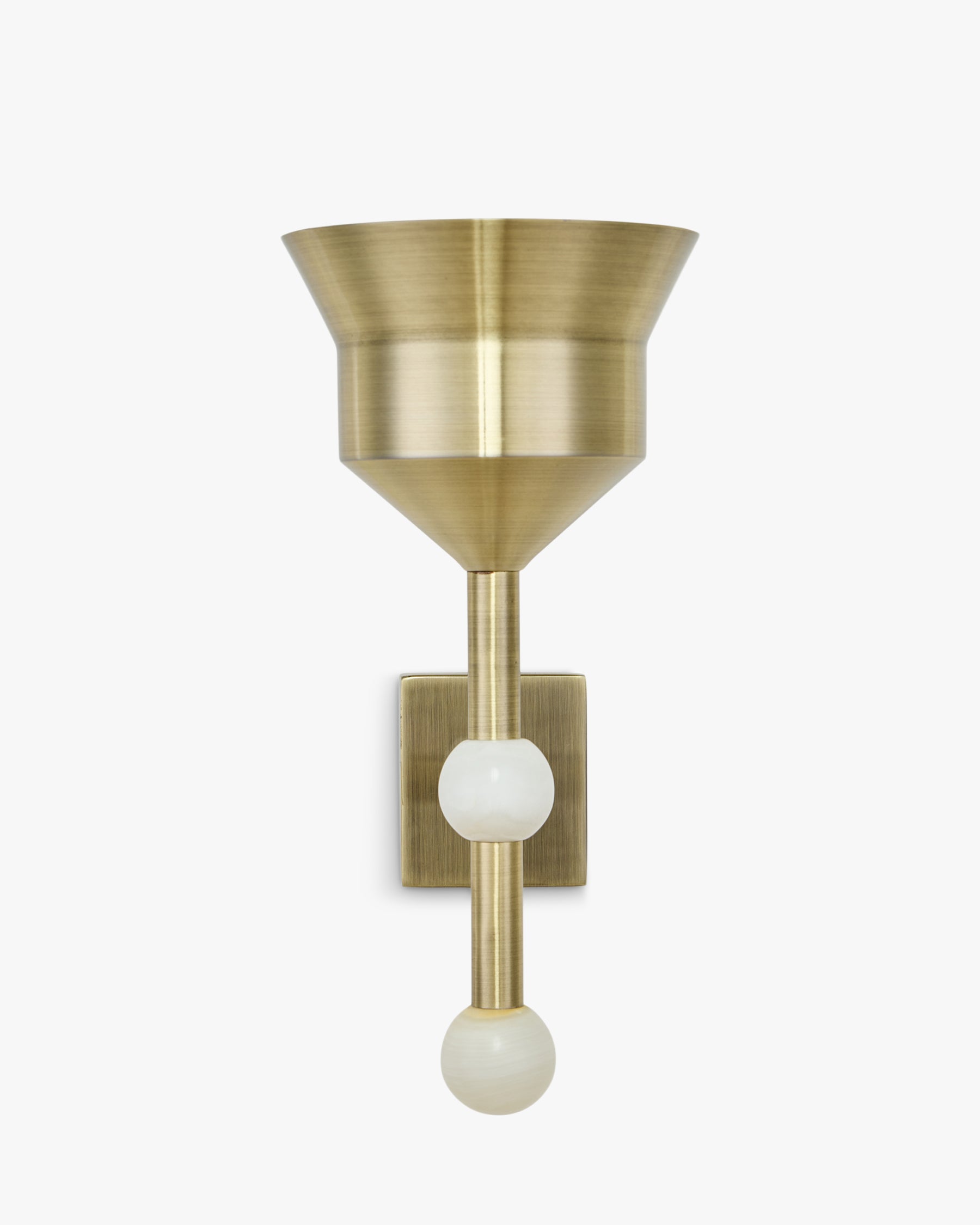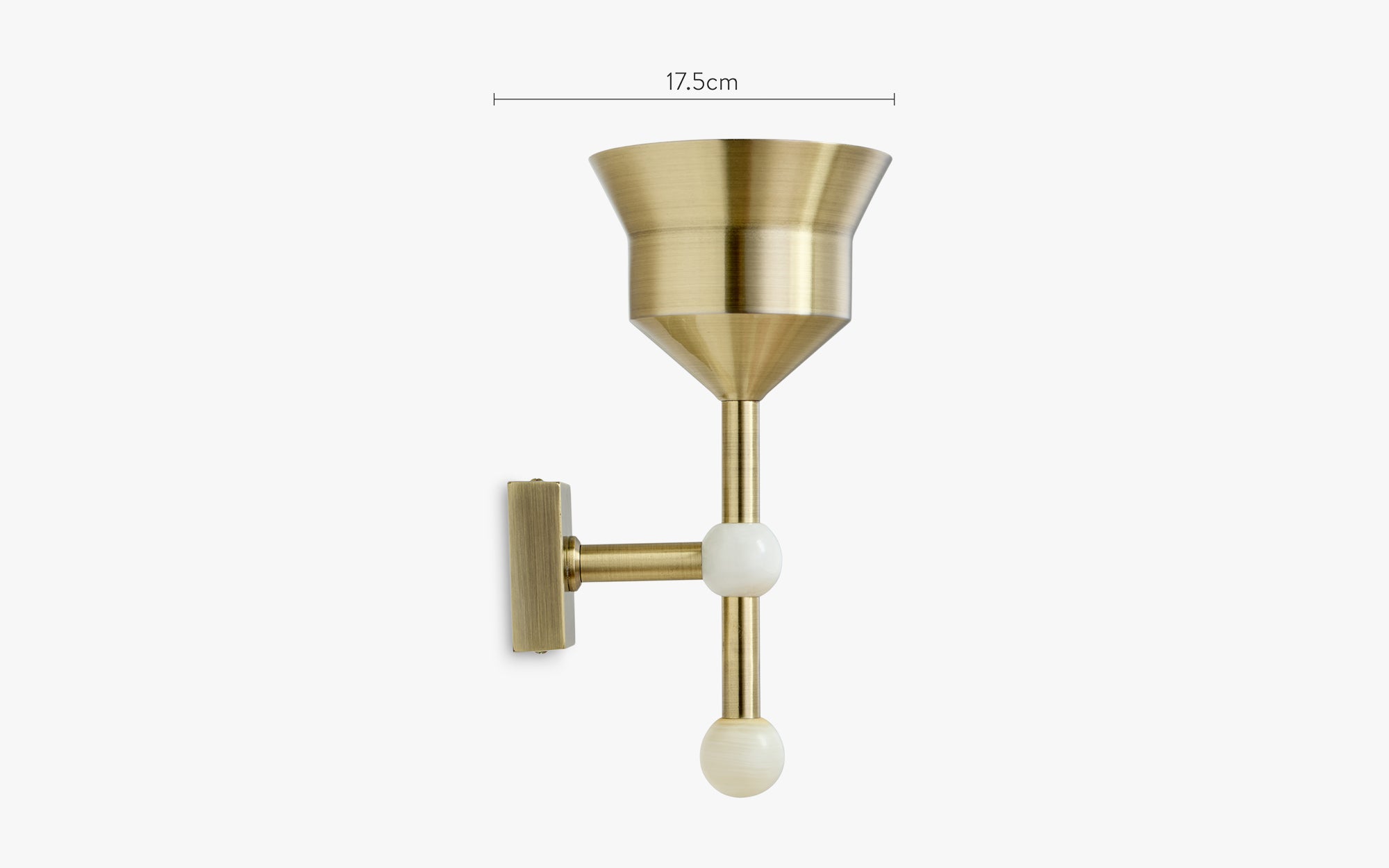 Leggi la nostra politica sui resiIl design geometrico della lampada da parete KOH combina il ferro di ottone antico e un paralume conico per creare una luce accogliente e moderna.