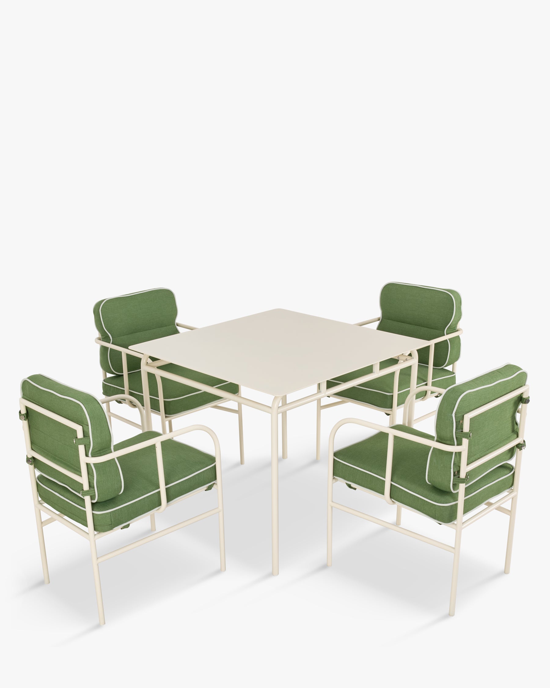 Set da giardino – Tavolo da pranzo quadrato + 4 sedie – Verde prato & metallo beige mandorla