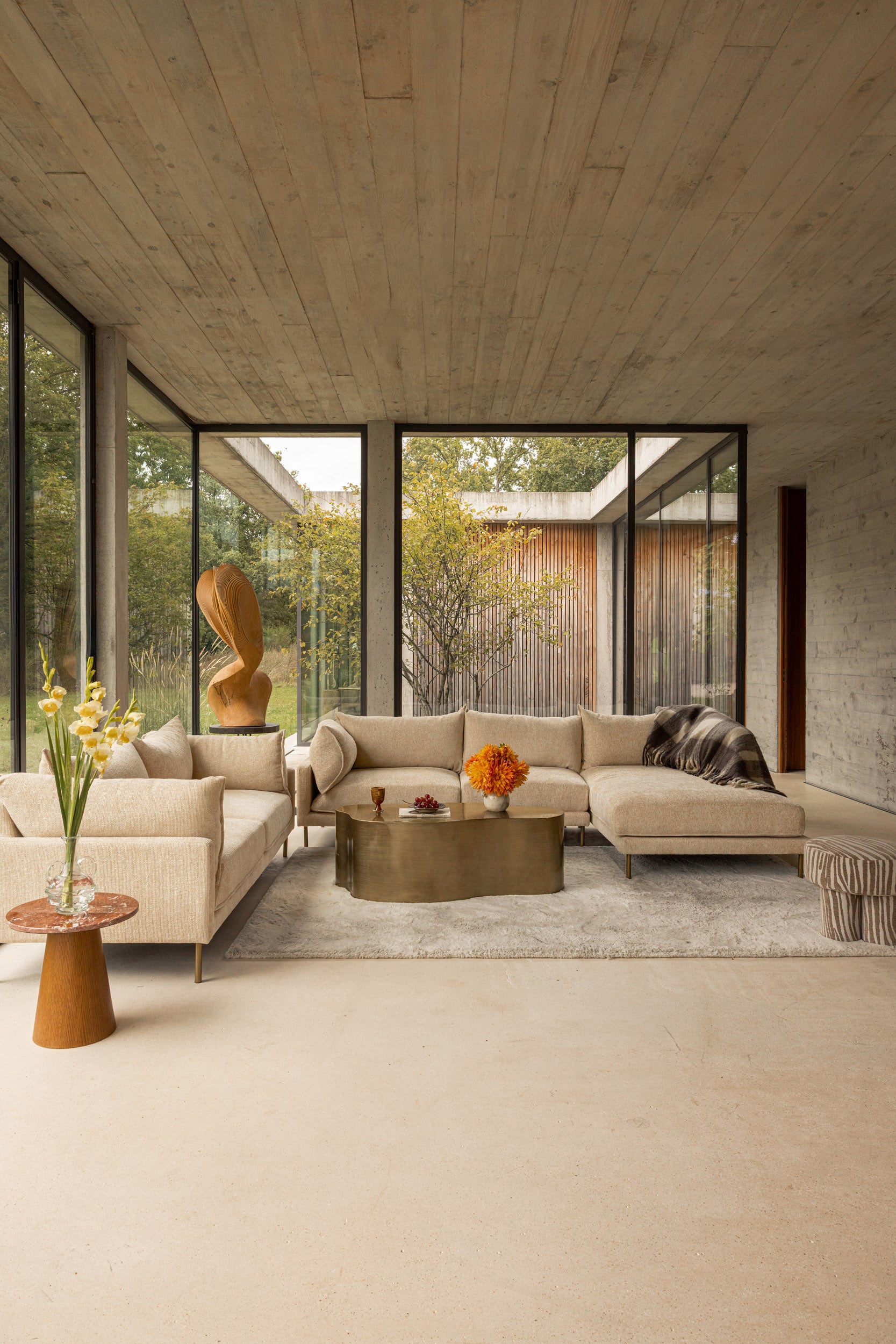 De ETHAN hoekbank in midden-eeuwse stijl combineert rondingen, een goed gemaakt onderstel en comfort.