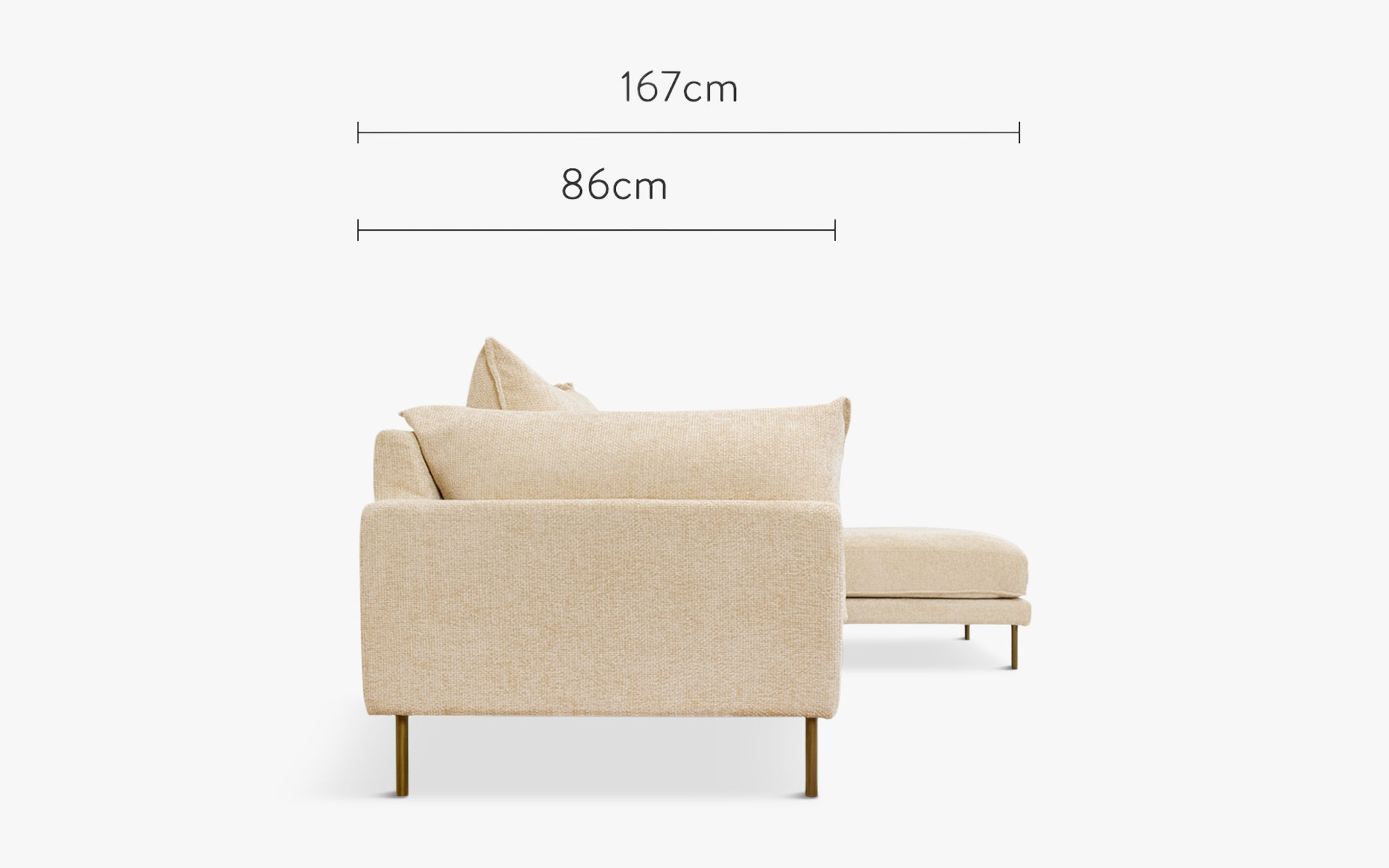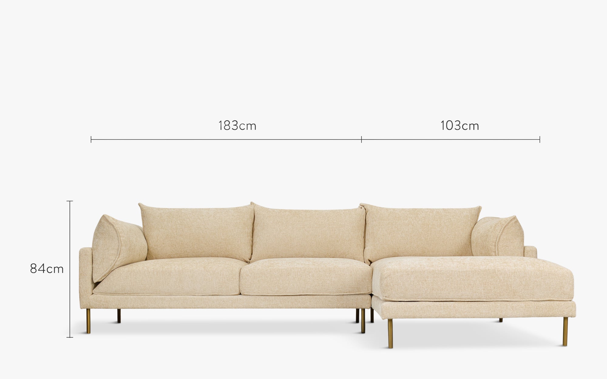 Hoekbank rechts, Zandkleurig tweed & messing, L286