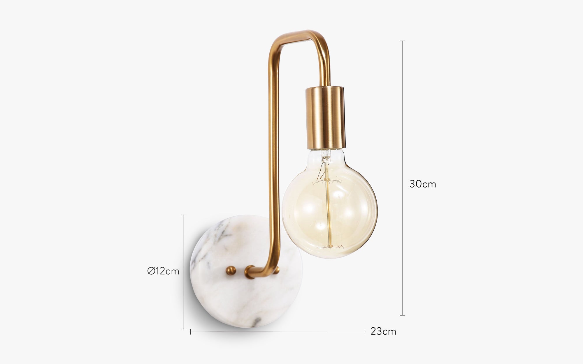 De delicate, wit-gemelified marmeren versie is perfect afgerond door de messing gekleurde stalen beugel. We raden een eenvoudige ronde van koolstofbol aan, omdat Flamingo op deze manier tot zijn recht komt.
