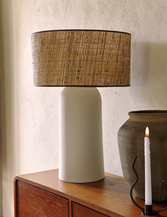 Tafellamp, natuurlijke vezelslampen en wit keramiek, H72
