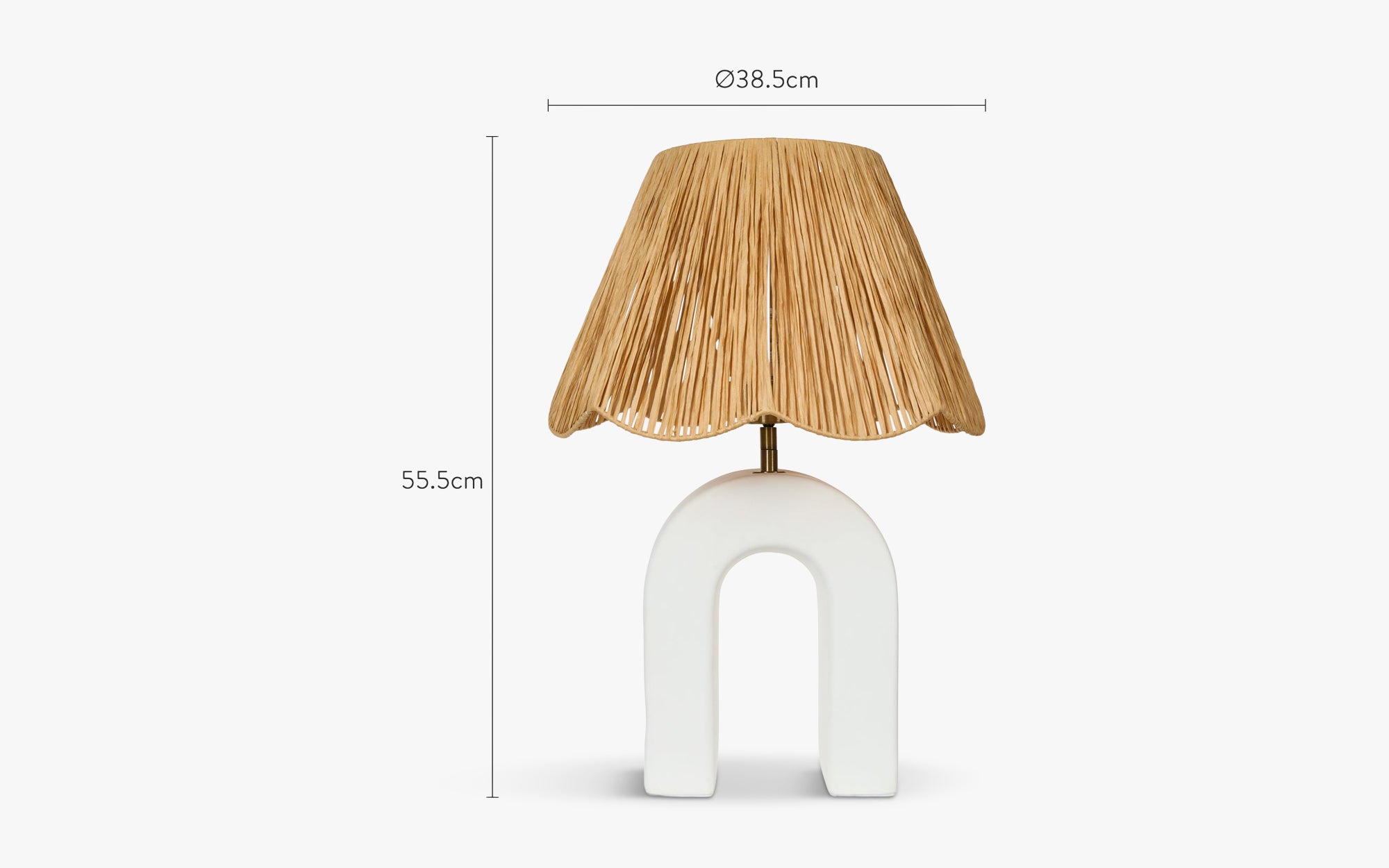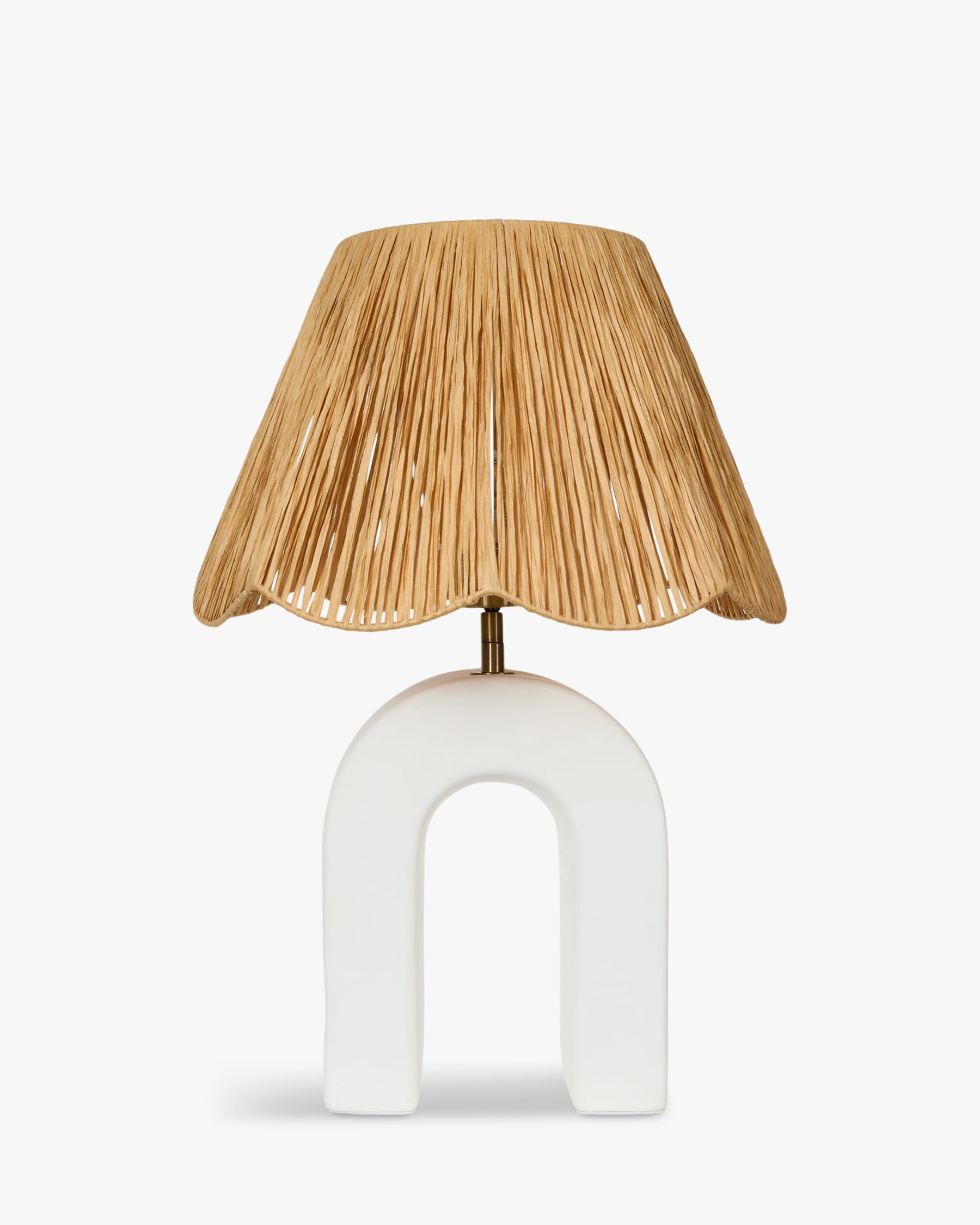 Lees ons retourbeleidDe OSNI tafellamp met keramische boogvoet en raffiakap combineert architectonisch design met de zachtheid van de eilanden.