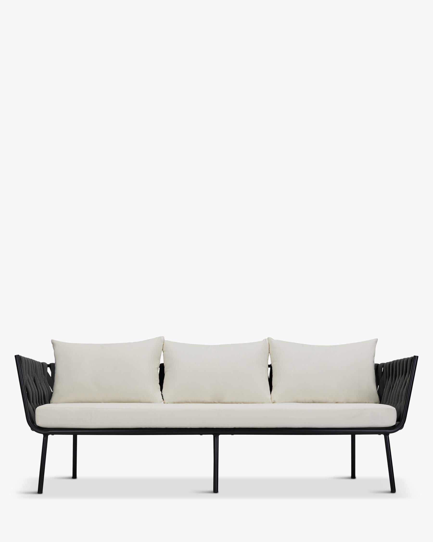 Tuinset, Ronde tuintafel + 2 stoelen, Zwart & ecru wit
