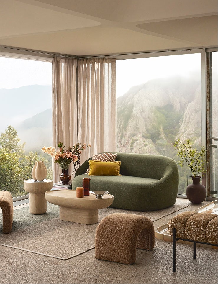 Lees ons retourbeleidFSC-structuur en OEKO-TEX stof, asymmetrisch ontwerp: de NEO 2-zitsbank combineert stijl, comfort en modulariteit voor een gezellige woonkamer.