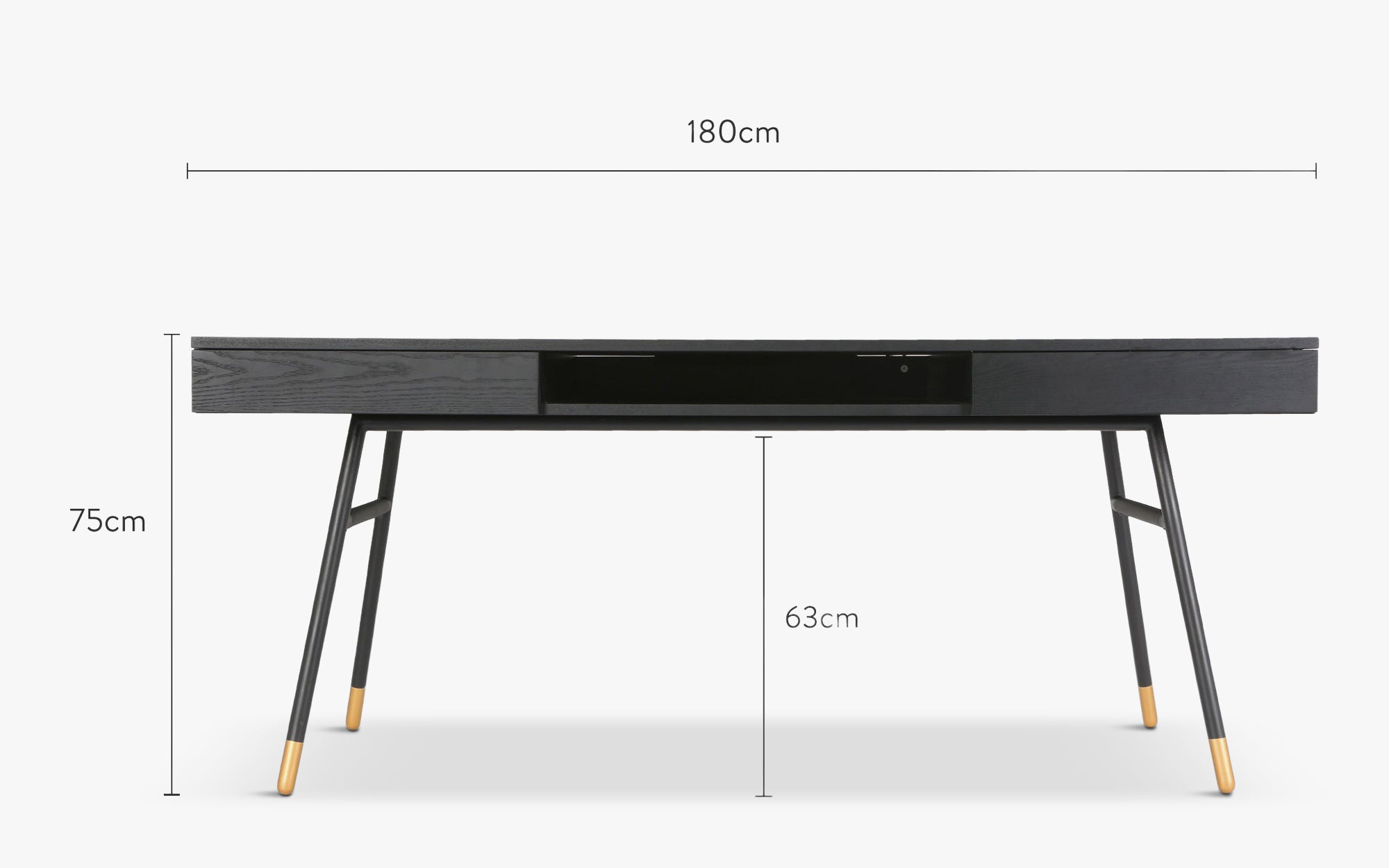 Kantoor, Ash Wood, Black & Gold Metal, L180