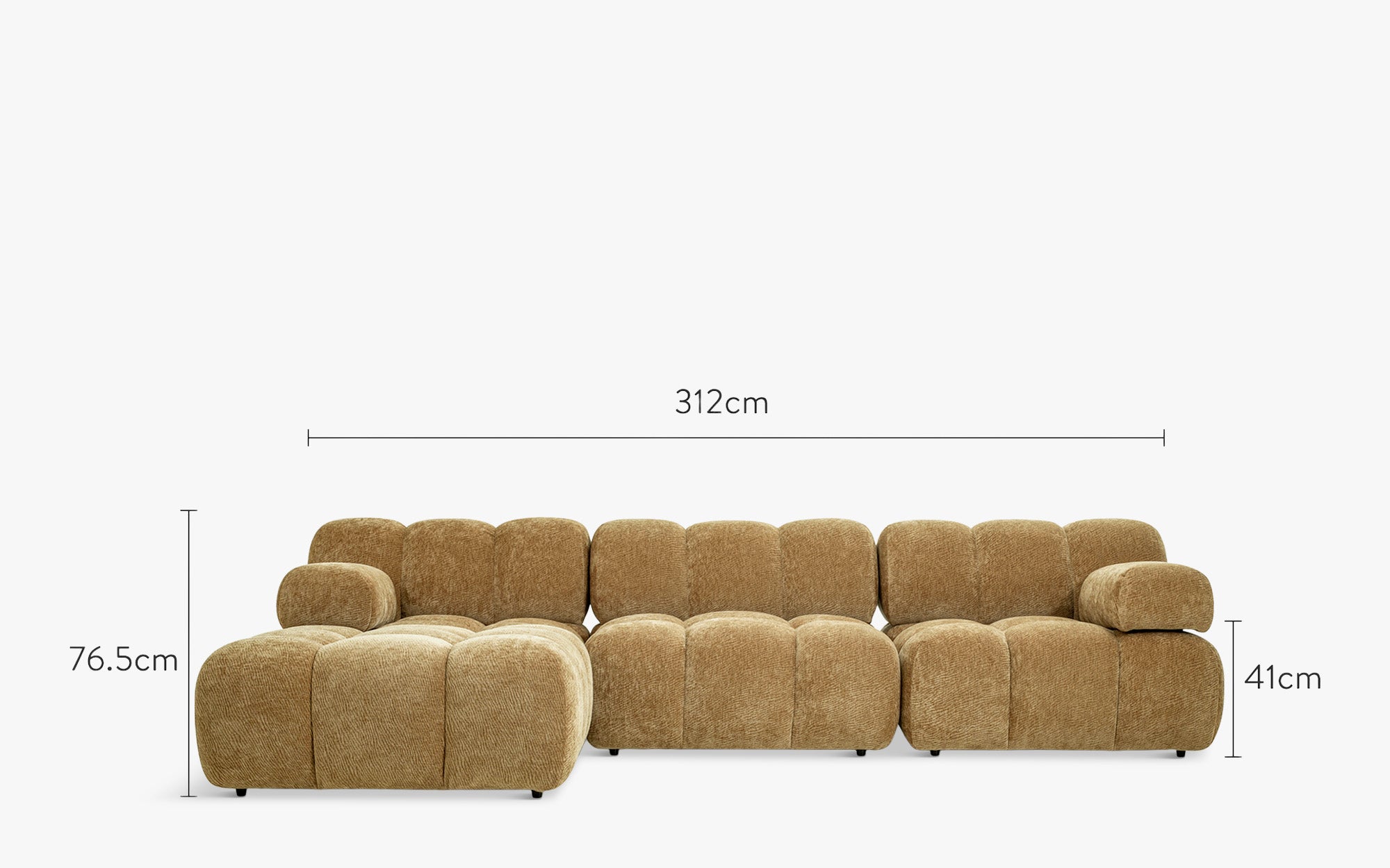 WAFFLE modulaire hoekbank – In karamelbruine tweed, modulair en comfortabel design, ideaal om een woonkamer op maat te creëren.