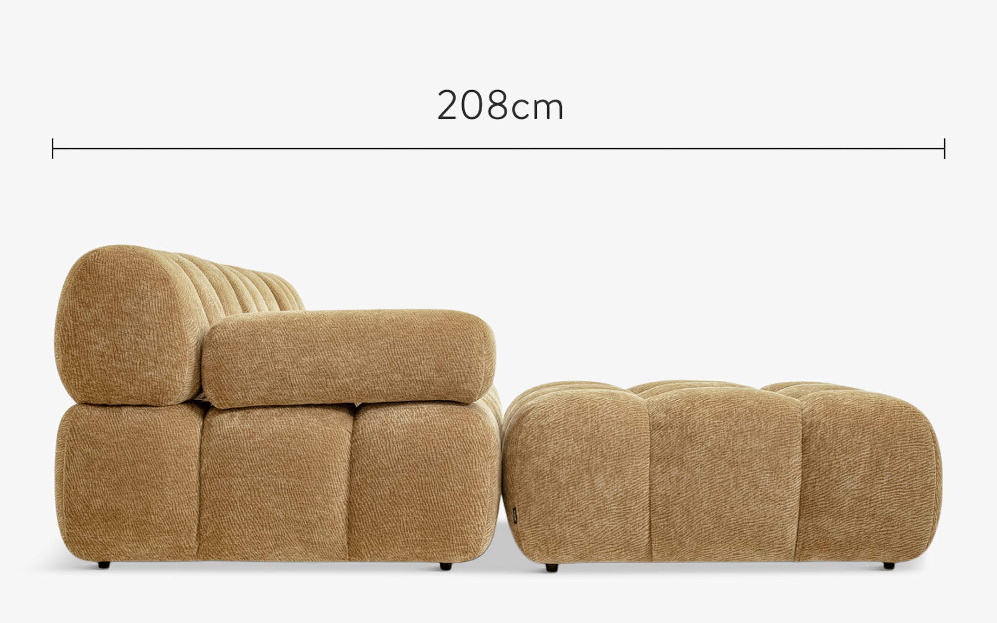 De royale afmetingen zorgen voor een gastvrije, omhullende zit – ideaal voor lange momenten van ontspanning.