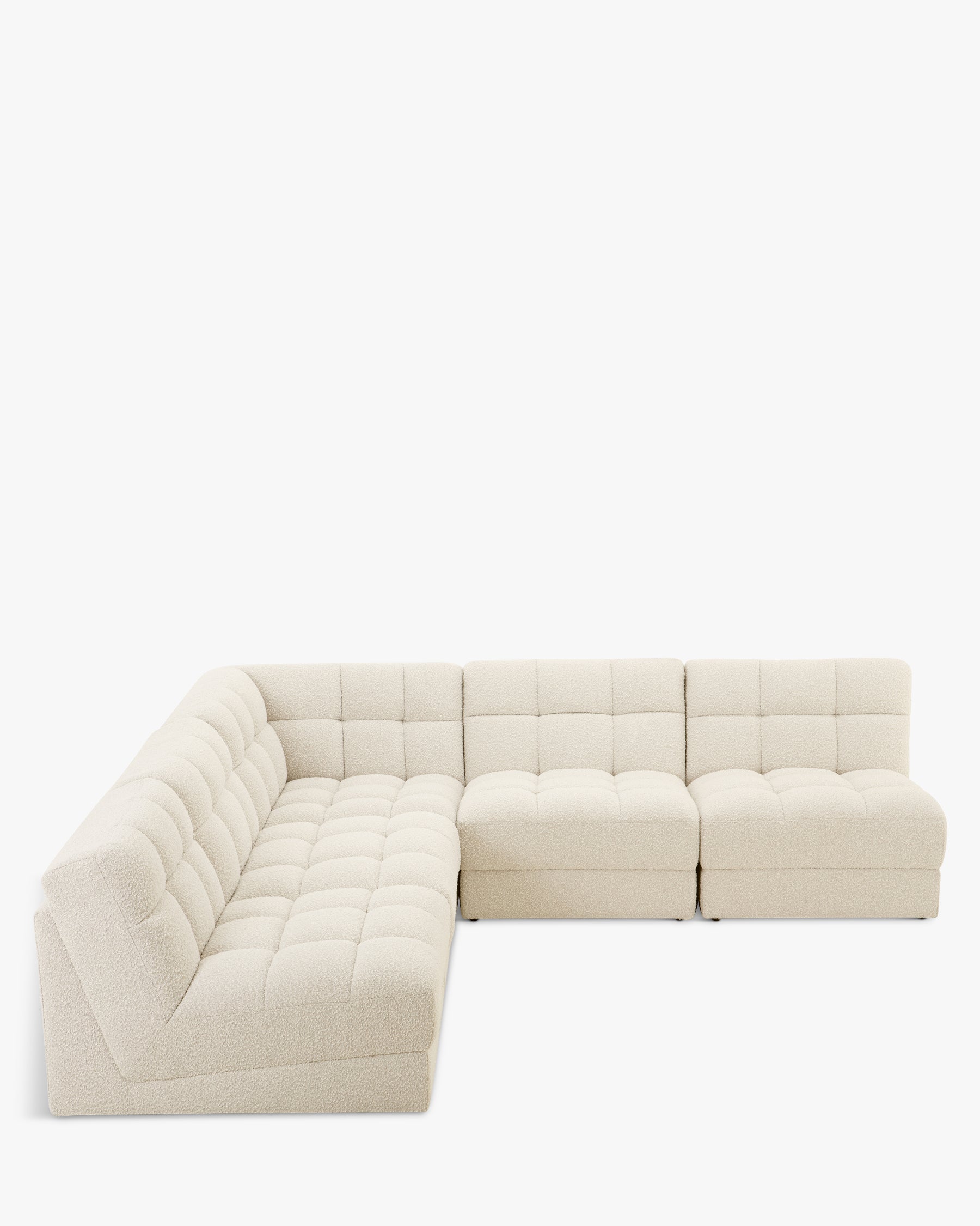 Canapé d'angle modulable, Blanc avoine bouclé, L276