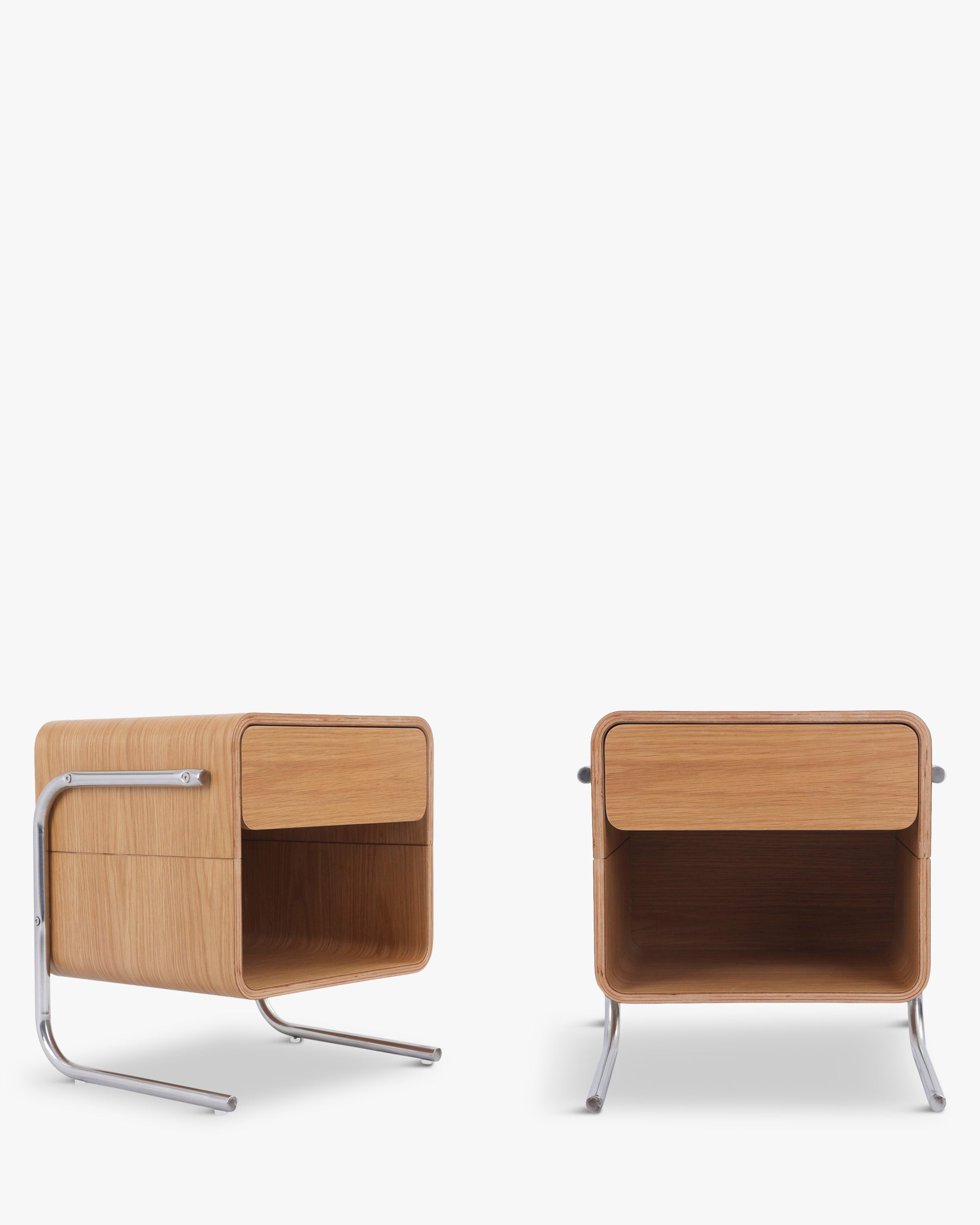 Ensemble 2 tables de chevet, Bois de chêne veiné & acier chromé, H50