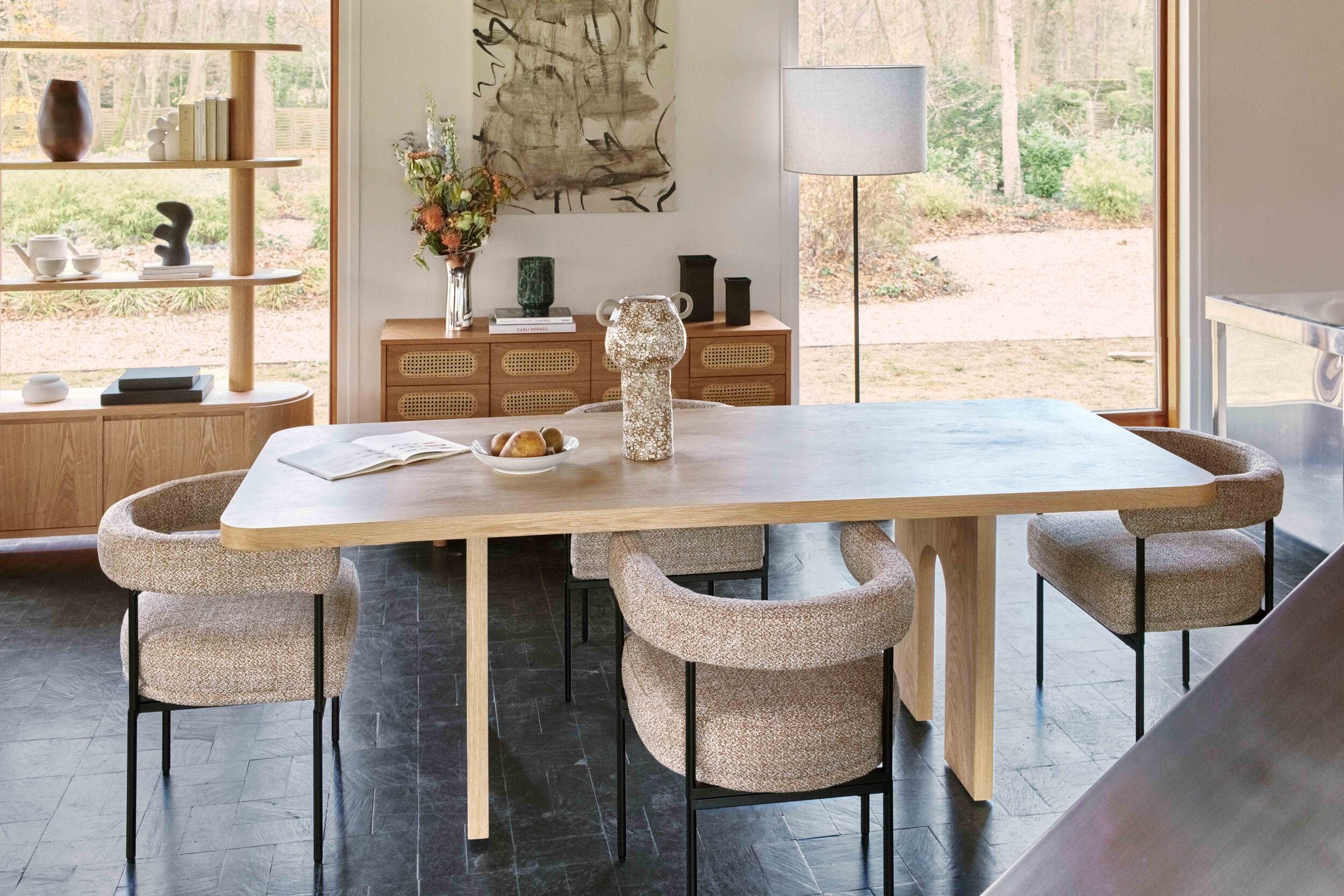 Lees ons retourbeleidDe ARCADE stoel houdt het midden tussen een fauteuil en een stoel. Hij combineert strakke lijnen en geometrische vormen en biedt comfort en tijdloosheid in elk interieur.
