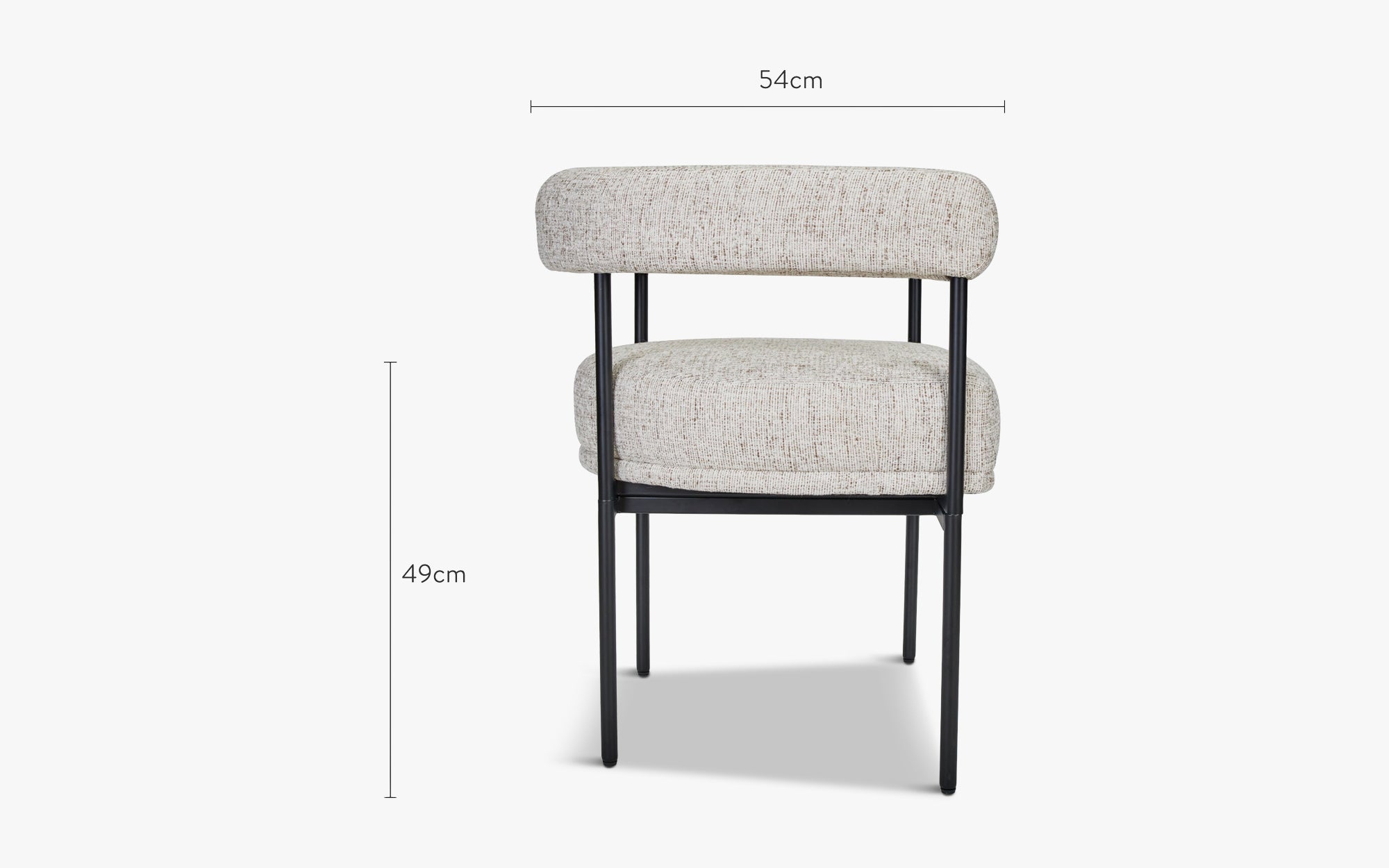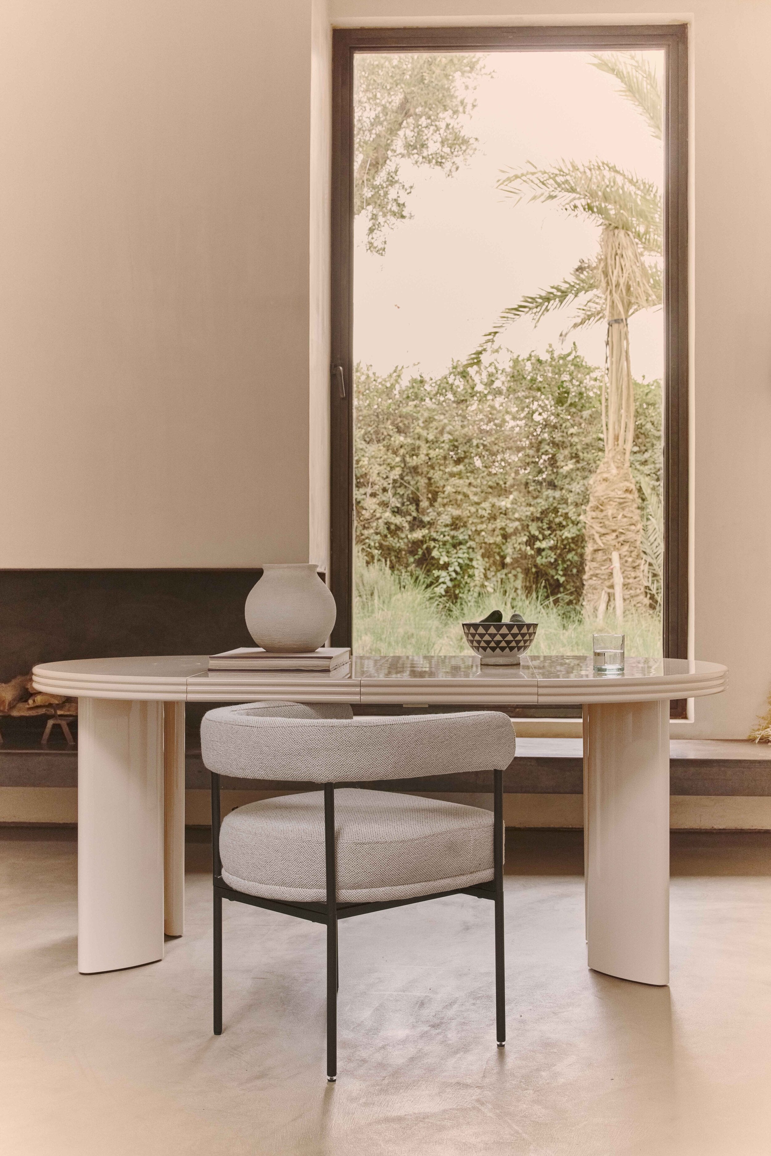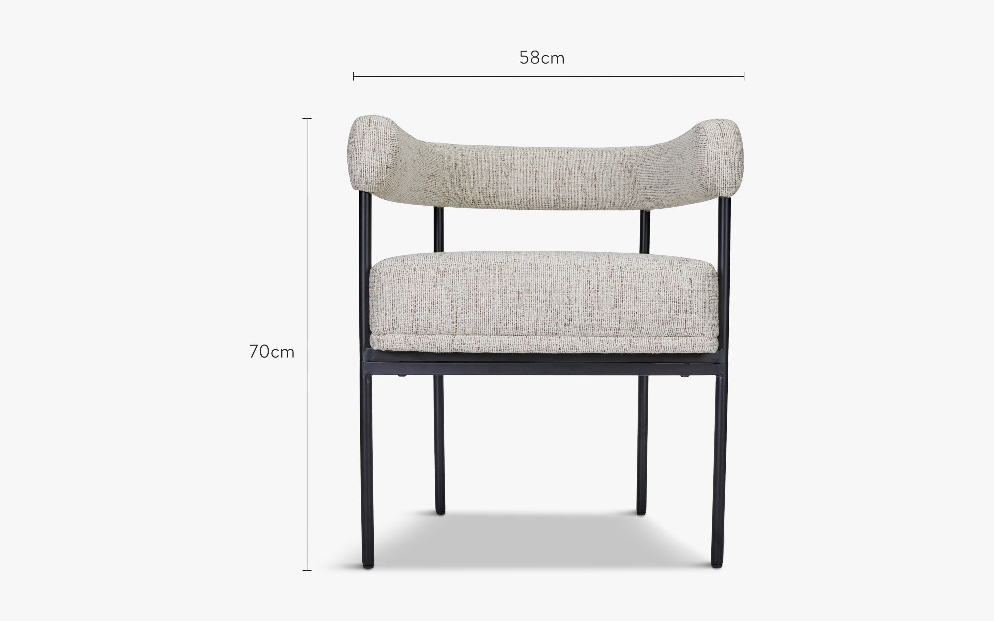 Lees ons retourbeleidDe ARCADE stoel, een kruising tussen een fauteuil en een stoel, combineert strakke lijnen en geometrische vormen en biedt comfort en tijdloosheid in elk interieur.