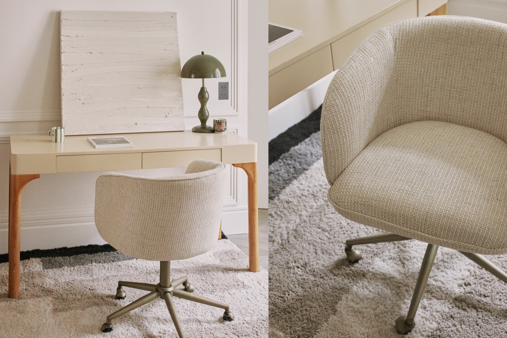 Bureaustoel, Tweed miami beige & messing metaal