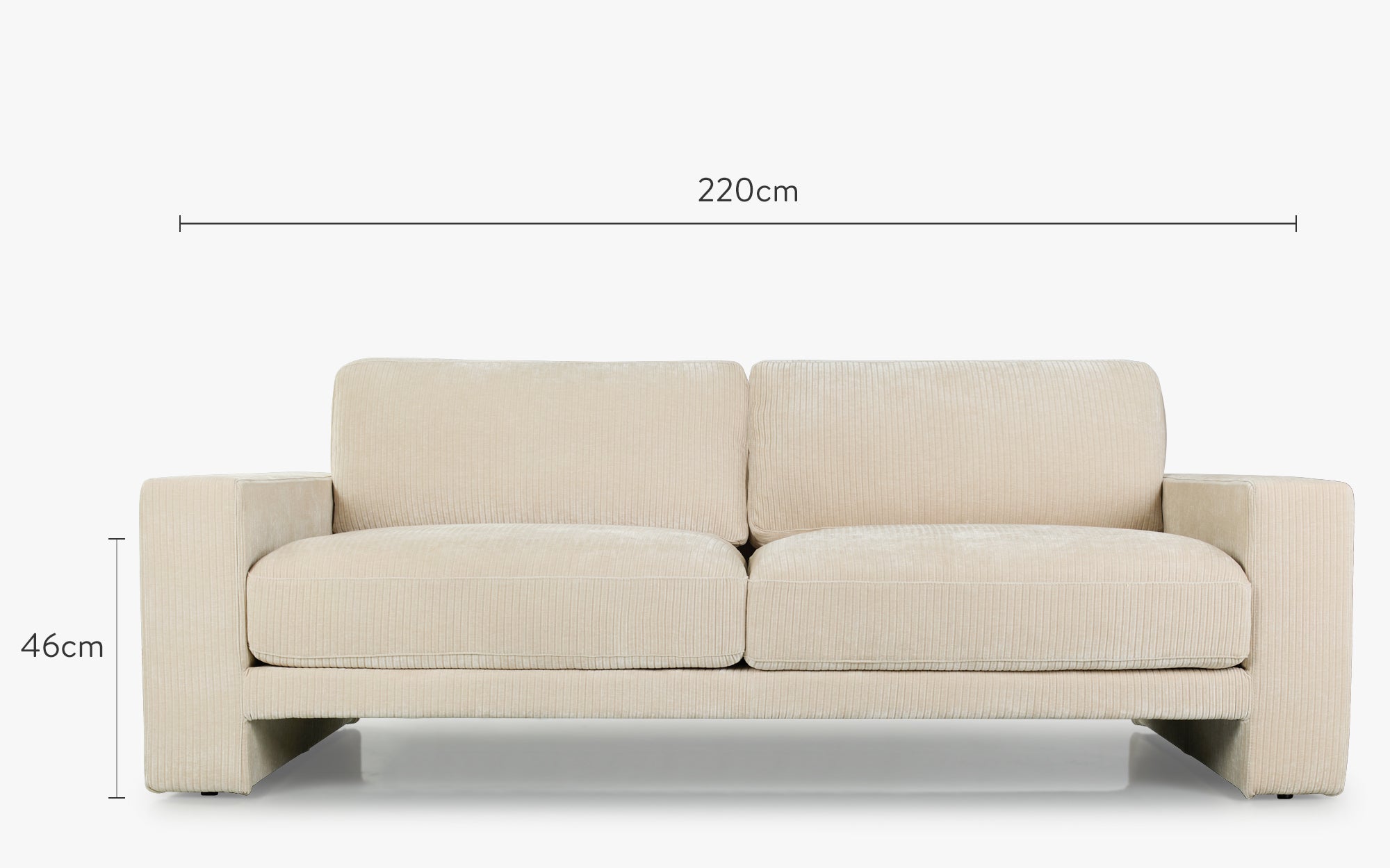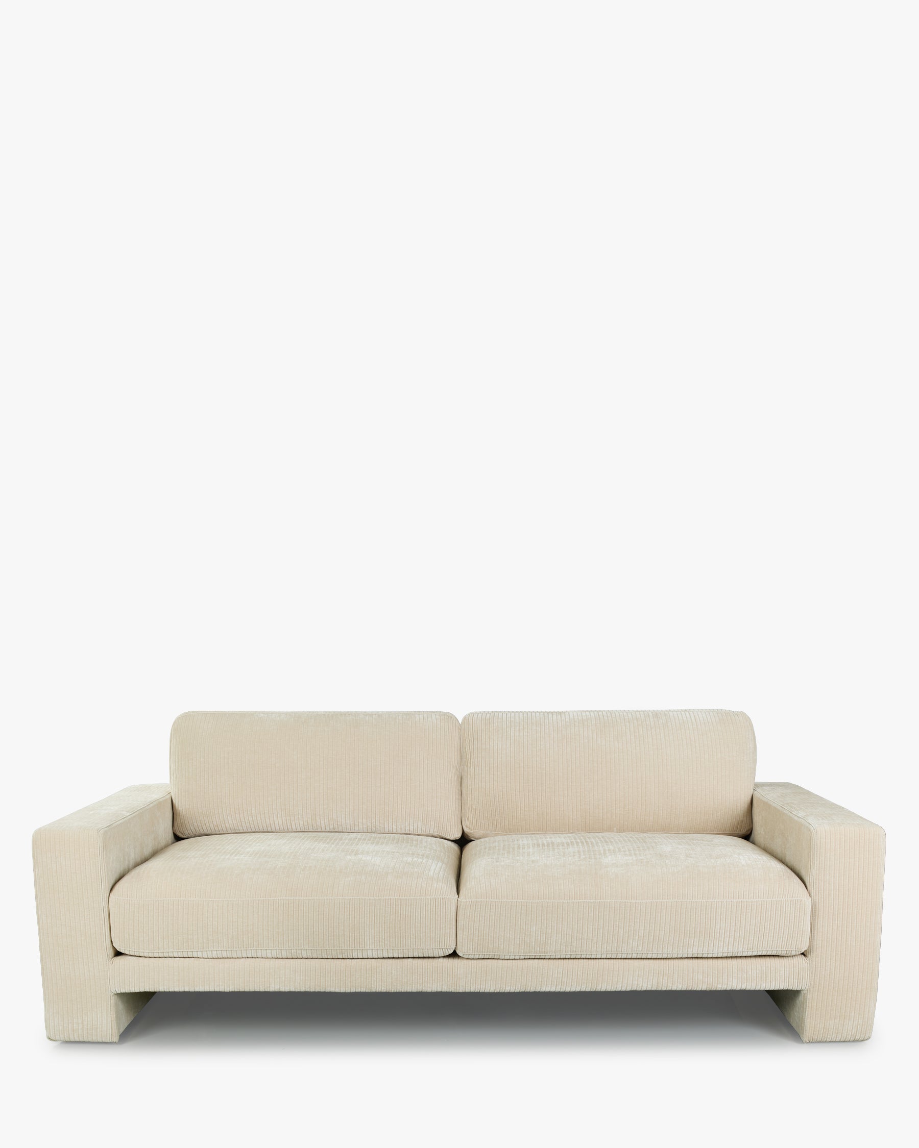 SERENA est une pièce élégante et intemporelle, un canapé qui impose une présence sculpturale tout en conservant une ambiance apaisante. Son design monolithique, construit autour de lignes droites et épurées, crée une présence architecturale forte et contemporaine. La ligne continue entre les accoudoirs et le piètement lui confère une silhouette cohérente, presque dessinée d’un seul geste. Ses accoudoirs larges et massifs, prolongements naturels du piètement, apportent stabilité et caractère. Grâce au vide creusé sous l’assise, SERENA semble flotter : une subtile ligne d’ombre architecturale qui allège le volume et crée un contraste graphique saisissant. Habillé d’un velours beige côtelé à larges rayures, riche et texturé, le canapé diffuse une chaleur sophistiquée et une touche luxueuse dans le salon.